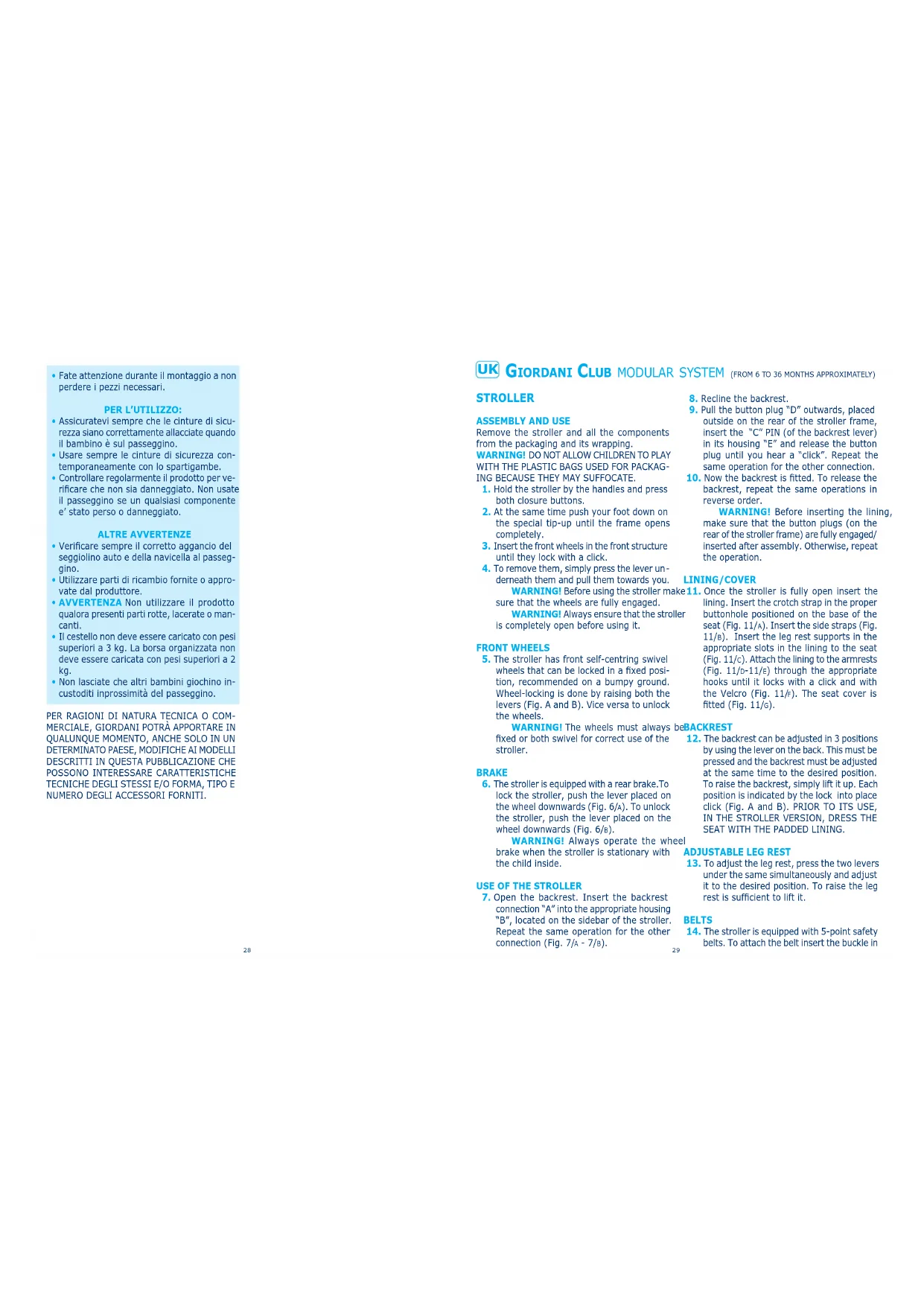Download the instructions for your Stroller in PDF format for free! Find your manual Club - Giordani and take your electronic device back in hand. On this page are published all the documents necessary for the use of your device. Club by Giordani.