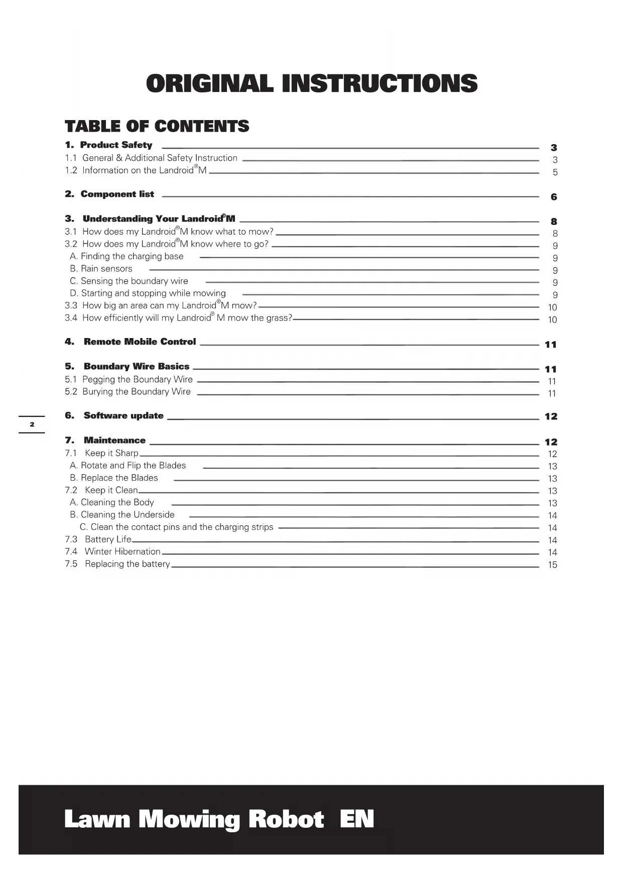 We would like to congratulate you on your new purchase of the Landroid M and entering into the care-free life of automatic mowing. In the following, we would like to help you better understand how your Landroid M thinks.