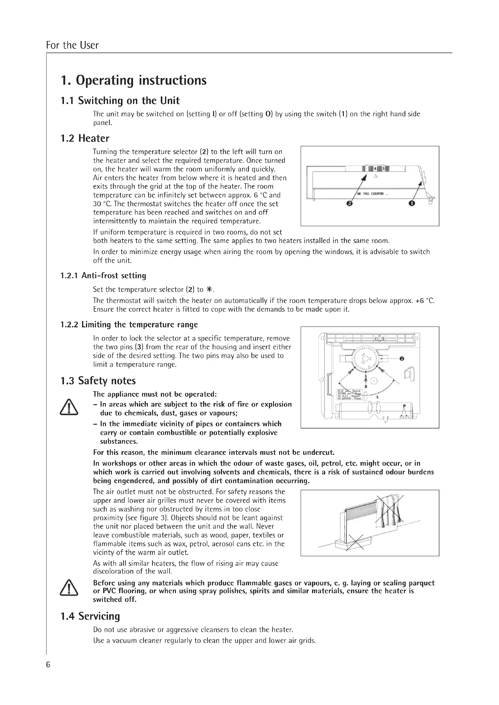 Before using any materials which produce flammable gases or vapours, e. g. laying or sealing parquet or PVC flooring, or when using spray polishes, spirits and similar materials, ensure the heater is switched off.
