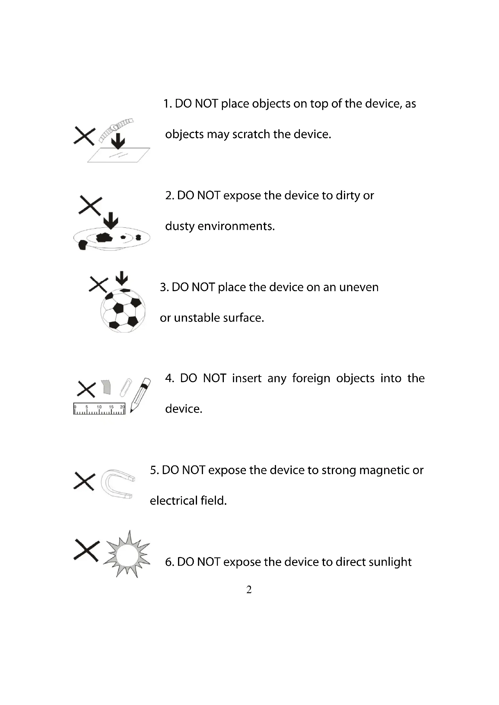 5. DO NOT expose the device to strong magnetic or