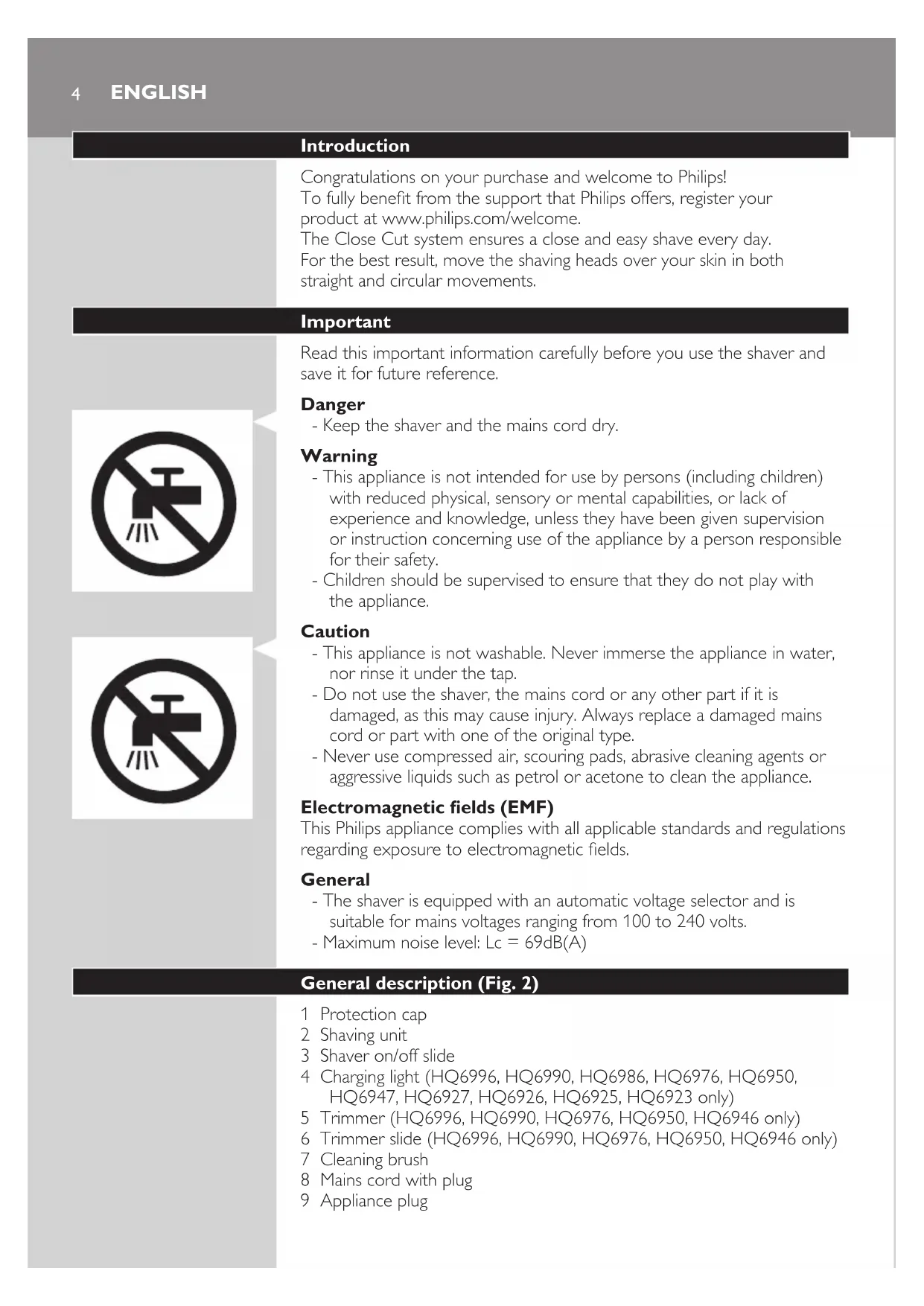 Download the instructions for your Shaver in PDF format for free! Find your manual HQ6997 - PHILIPS and take your electronic device back in hand. On this page are published all the documents necessary for the use of your device. HQ6997 by PHILIPS.