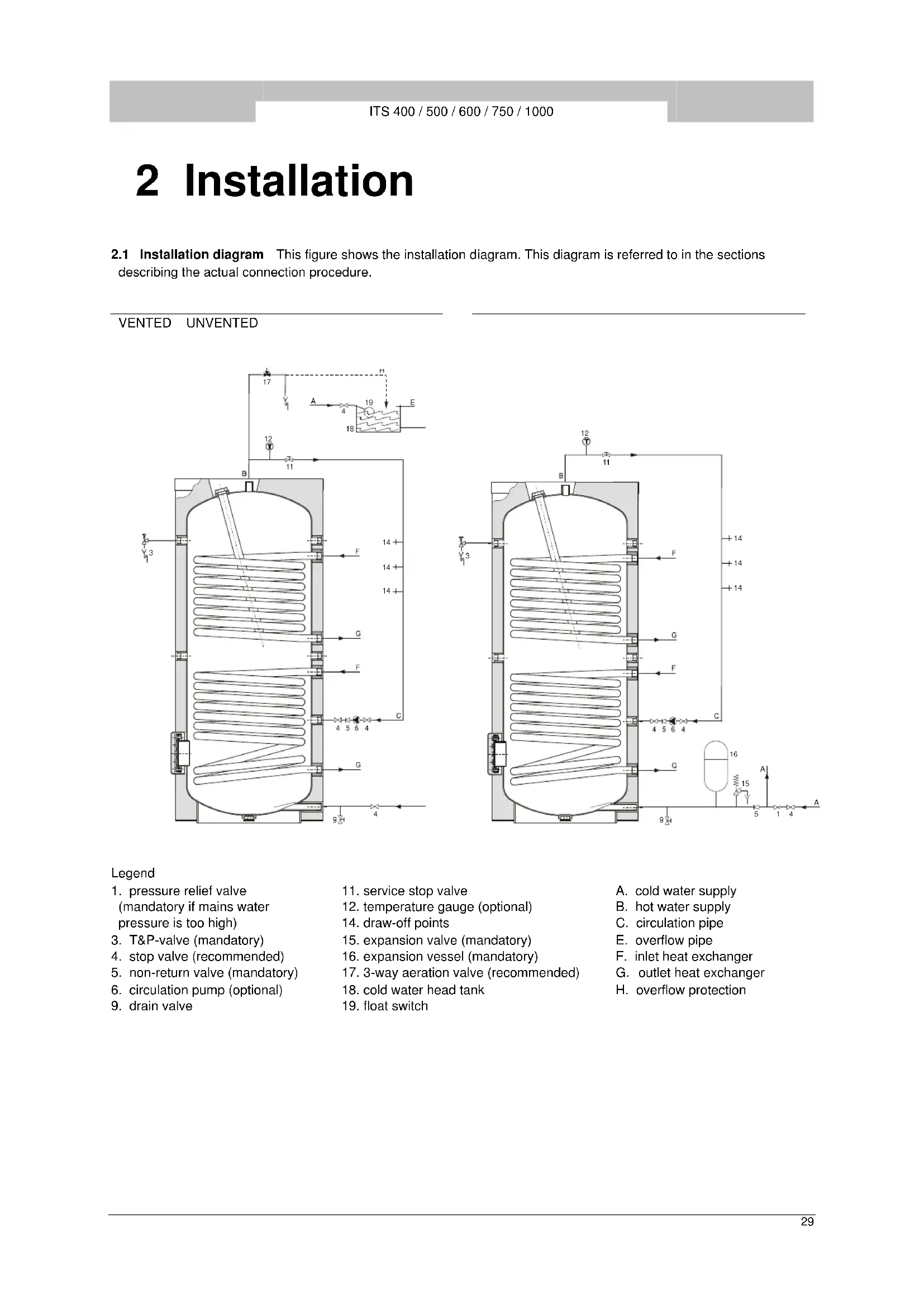 and the water heater, as required by the applicable regulations.ITS 400 / 500 / 600 / 750 / 1000