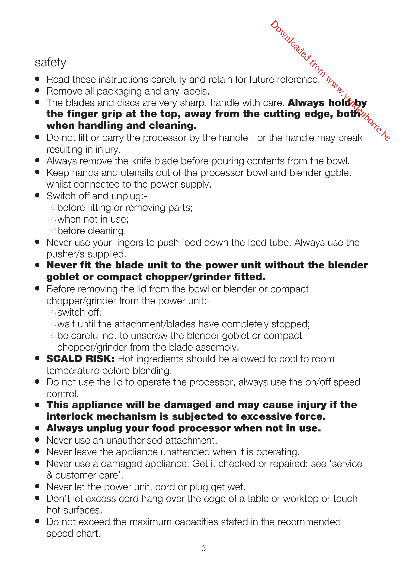 When fitting the lid to the goblet always ensure that the lid and goblet rim are clean and dry to ensure a good seal and prevent spillage. Downloaded from www.vandenborre.beslicing/grating disc safety