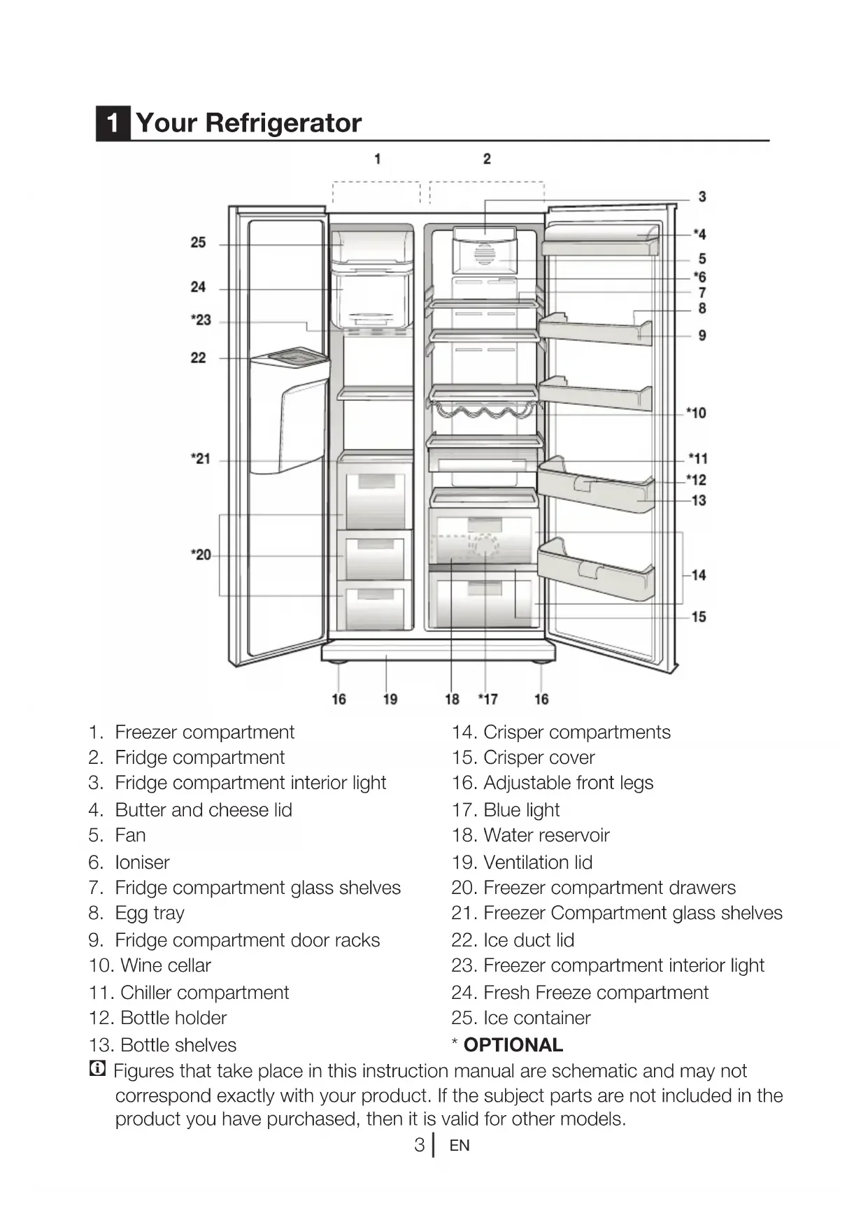 C Figures that take place in this instruction manual are schematic and may not correspond exactly with your product. If the subject parts are not included in the product you have purchased, then it is valid for other models. 5 Using your refrigerator