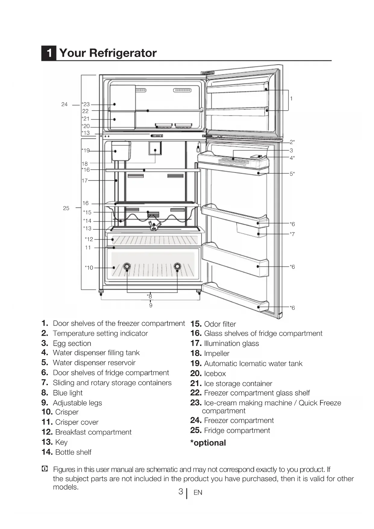 - For products with a freezer compartment; Do not eat cone ice cream and ice cubes immediately after you take them out of the freezer compartment! (This may cause frostbite in your mouth.)