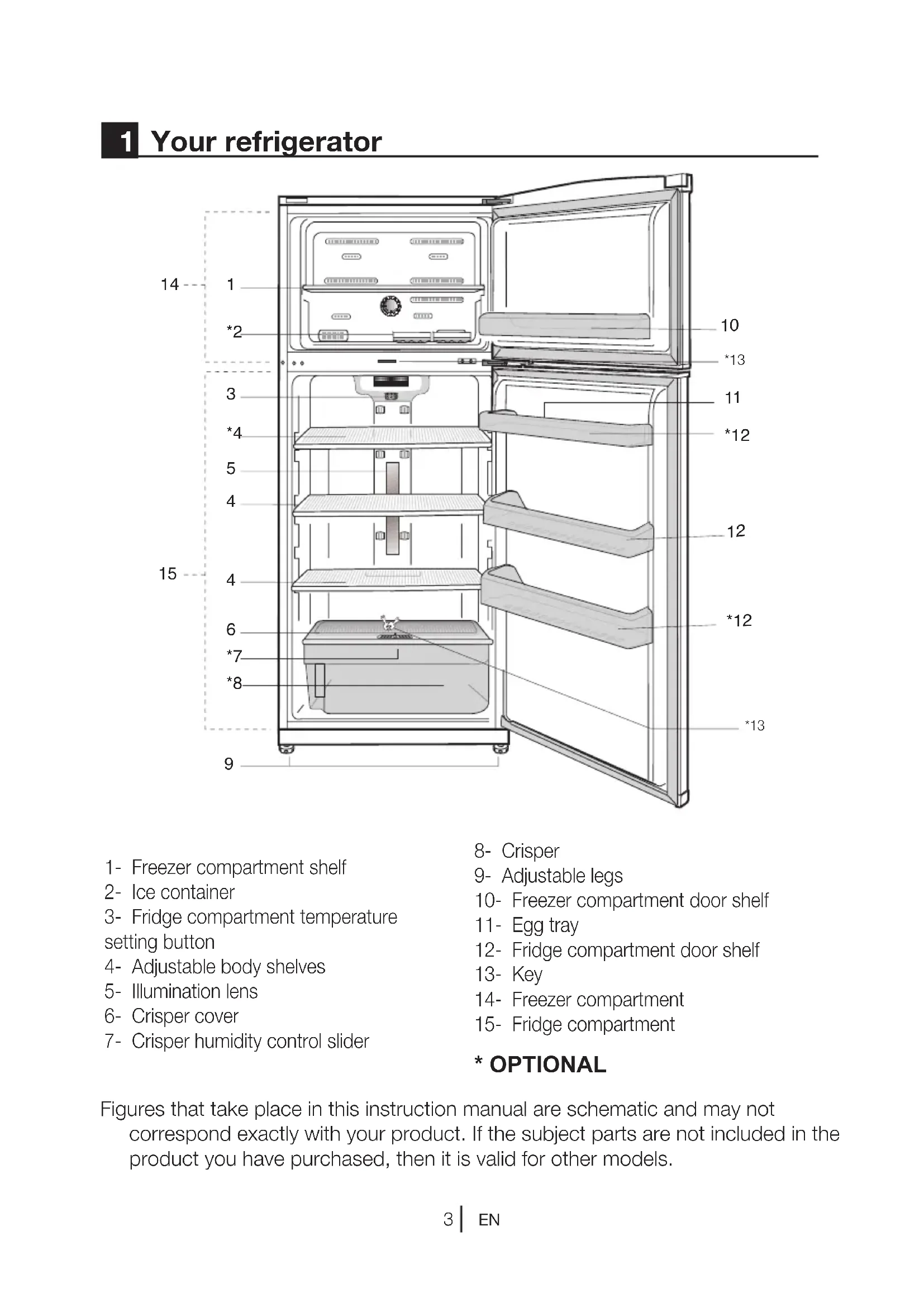 - For products with a freezer compartment; Do not eat cone ice cream and ice cubes immediately after you take them out of the freezer compartment! (This may cause frostbite in your mouth.)