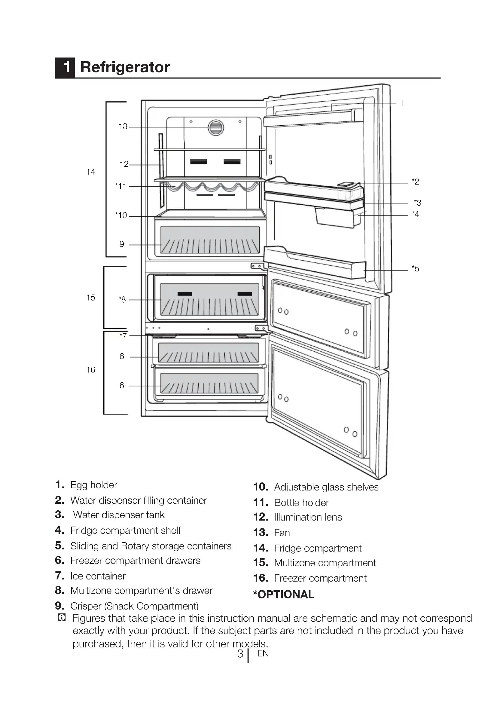 - Children must be supervised to prevent them from tampering with the product. Compliance with the AEEE Regulation and Disposing of the Waste Product This product does not contain harmful and forbidden materials described in the "Regulation on the Control of the Waste Electrical and Electronic Equipment" issued by the T.R. Ministry of Environment and City Planning. Complies with the AEEE Regulation. This product has been manufactured with high quality parts and materials which can be reused and are suitable for recycling. Therefore, do not dispose the product with normal domestic waste at the end of its service life. Take it to a collection point for the recycling of electrical and electronic equipment. Please consult your local authorities to learn the nearest collection point. Help protect the environment and natural resources by recycling used products. For children's safety, cut the power cable and break the locking mechanism of the door, if any, so that it will be non-functional before disposing of the product.EN