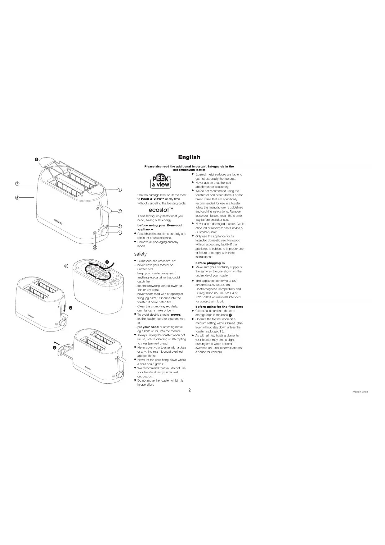As with all new heating elements, your toaster may emit a slight burning smell when it is first switched on. This is normal and not a cause for concern. English
