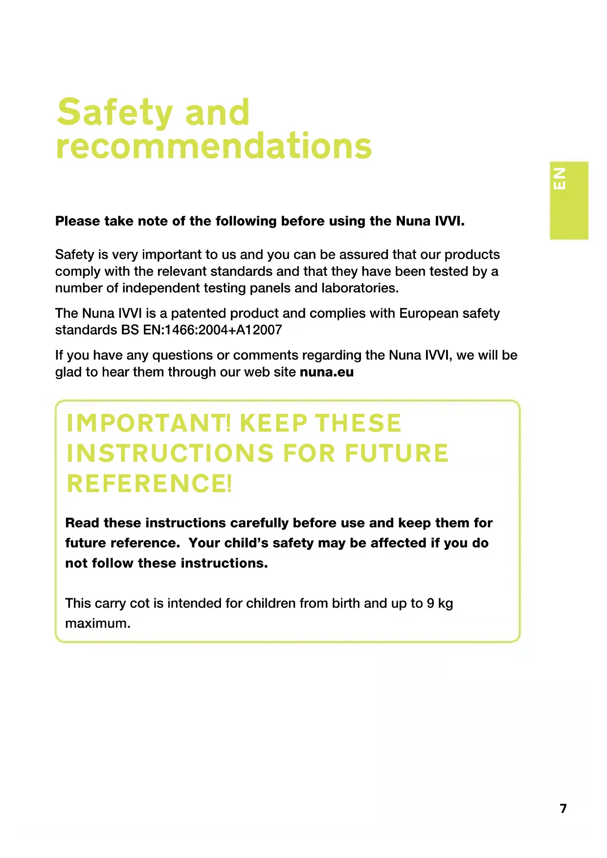 The Nuna IVVI is a patented product and complies with European safety standards BS EN:1466:2004+A12007