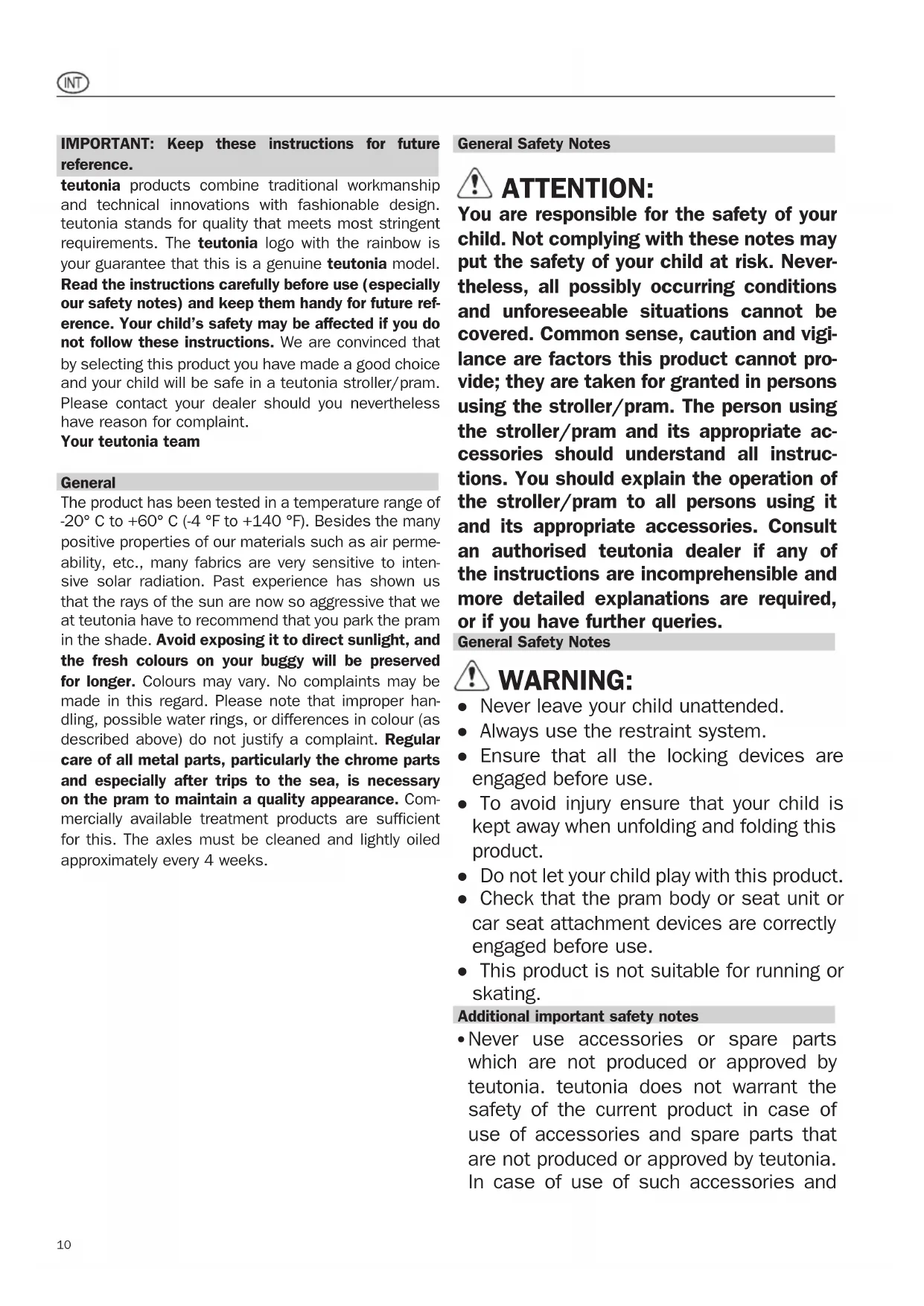 dealer of the product and possible claims under the applicable statutory warranty on product liability against the manufacturer. teutoniaGoCarefreeGuarantee AdditionalCommercialGuaranteeforthepurchase ofnewteutoniastrollers&accessories