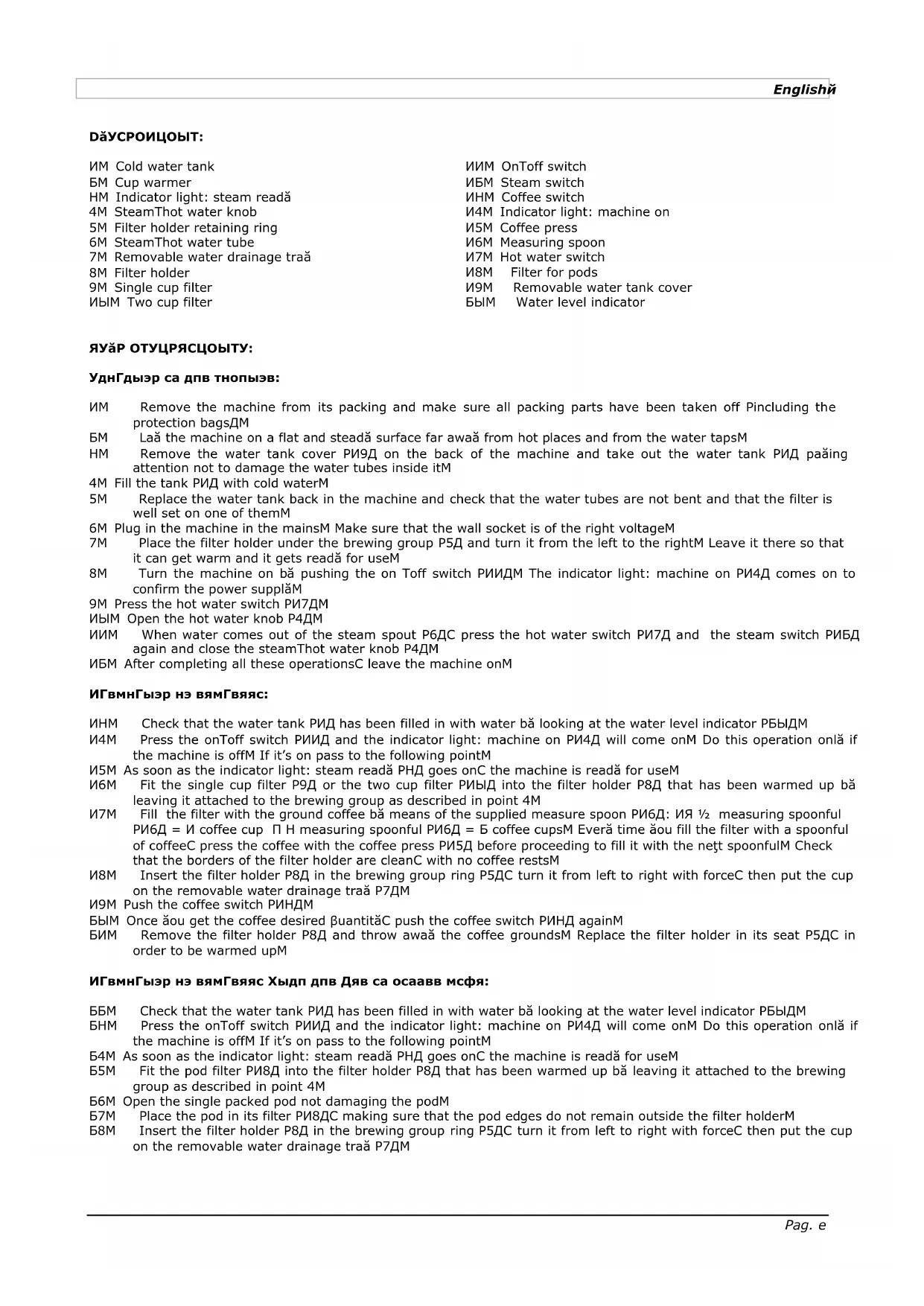 ROUTINE MAINTANCE AND PRECAUTIONS: - It is recommended to clean, after each use, the steam tube and the strainer holder carefully - For cleaning it is recommended the use of a wet damp cloth - Do not leave the machine outdoor. And do not immerse the machine in water. - The machine can be used only by adults and must be kept away from children - Do not wash strainer and strainer holder in dishwasher