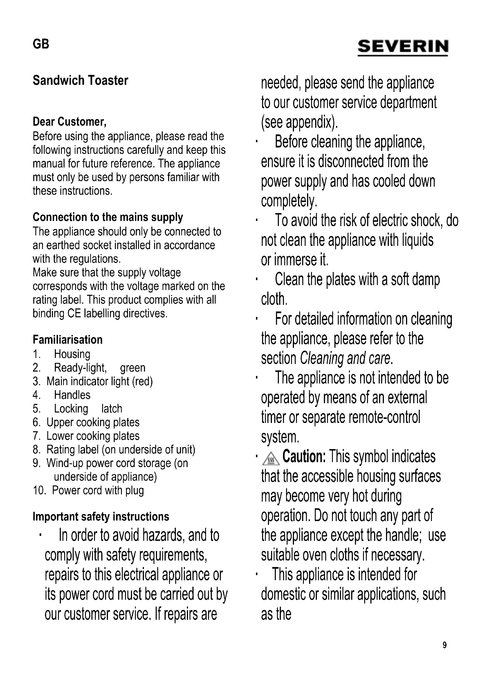 SA 2971 - Croque monsieur clip SEVERIN - Free user manual and instructions