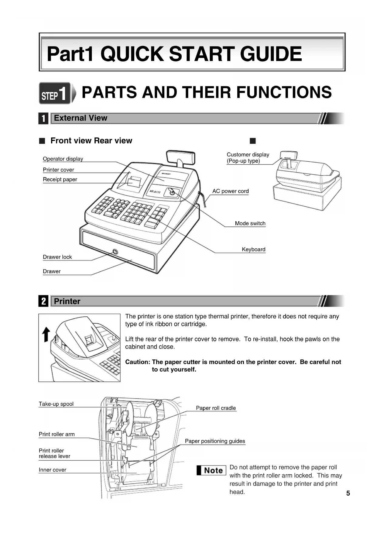 - Be very careful when removing and replacing the printer cover, as the cutter mounted on it is very sharp.