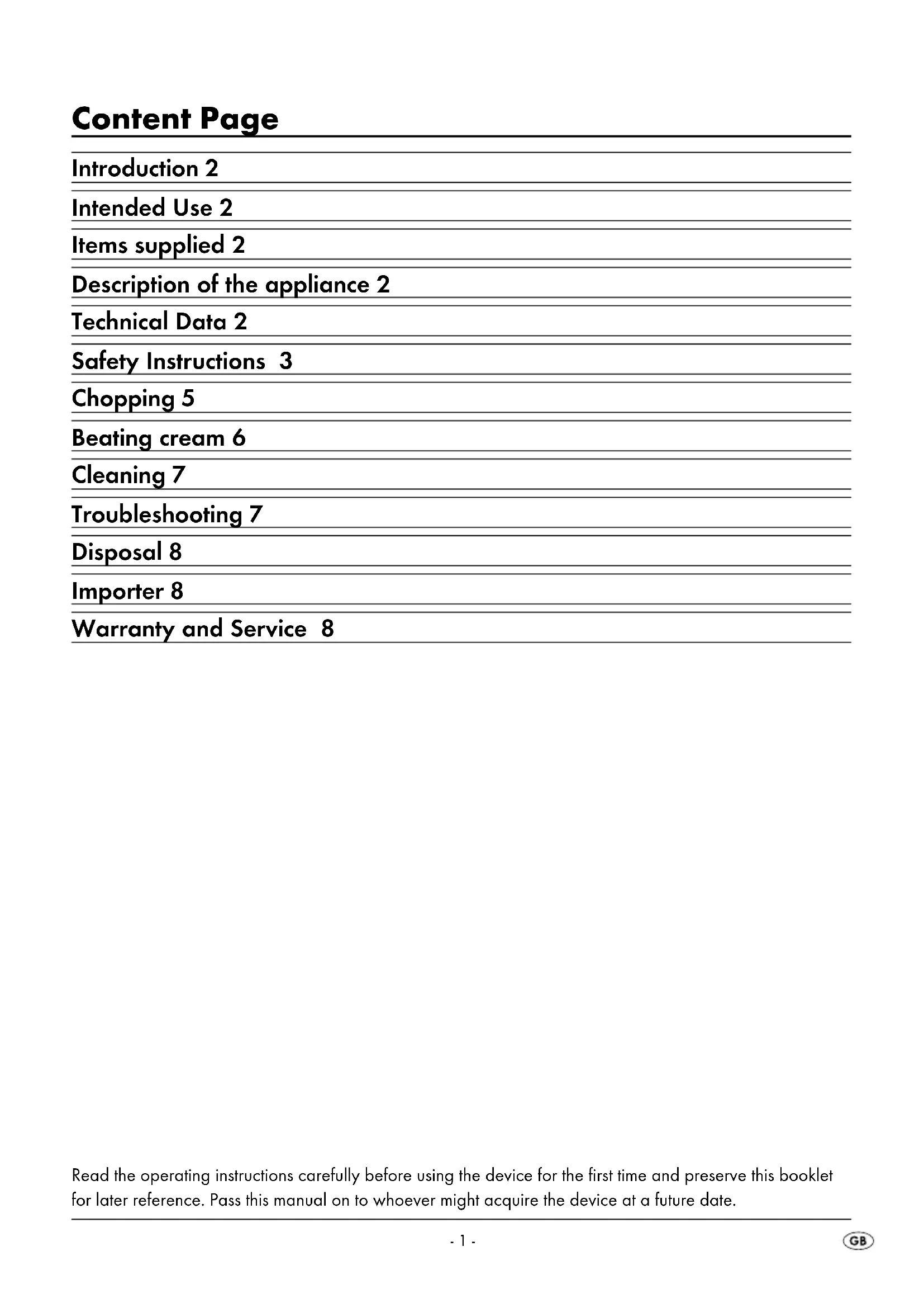- Handle the extremely sharp blade with caution, it can cause injuries. Reassem- ble the universal food processor after using and cleaning it so that you do not in- jure yourself with the blade. Keep the blade out of the reach of children.