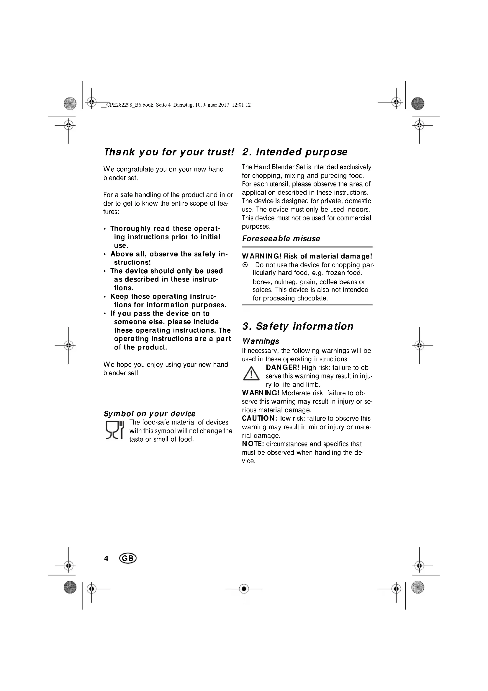 Thank you for your trust! We congratulate you on your new hand blender set. For a safe handling of the product and in or- der to get to know the entire scope of fea- tures: