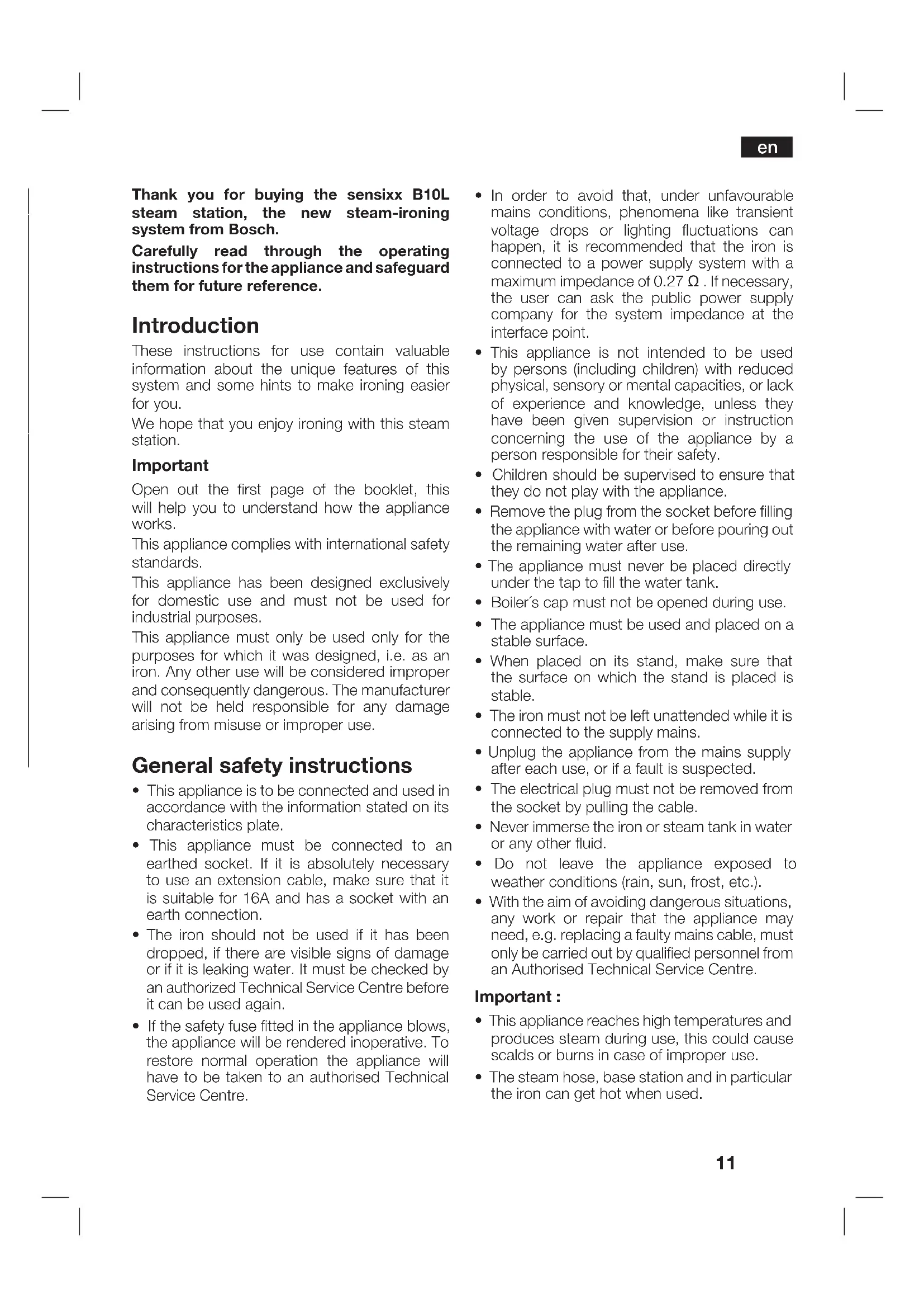 Download the instructions for your Iron in PDF format for free! Find your manual sensixx B10L - BOSCH and take your electronic device back in hand. On this page are published all the documents necessary for the use of your device. sensixx B10L by BOSCH.