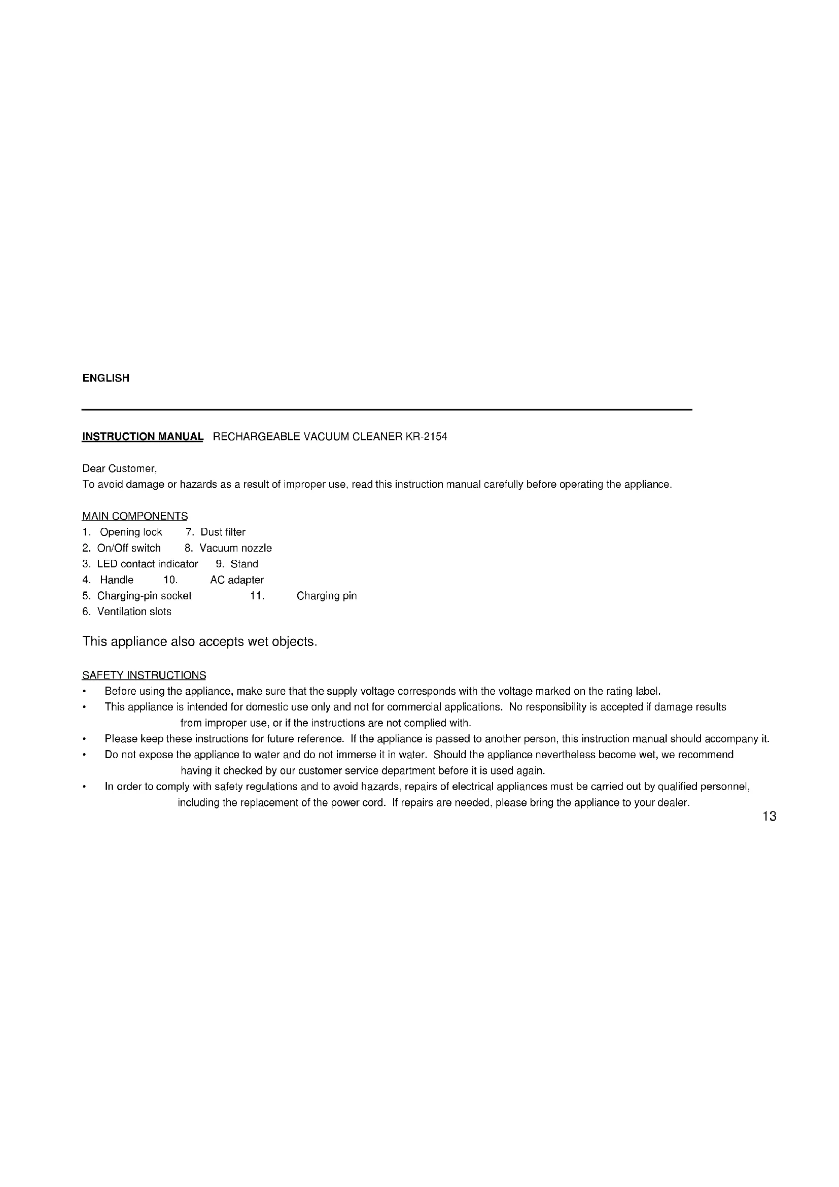 This appliance also accepts wet objects. SAFETY INSTRUCTIONS