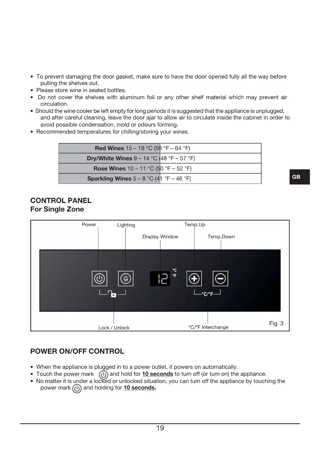 - When the temperature probe is out of order, the display window will show with “HH” or “LL” instead of a digital gure while continuous buzz sound will be heard. In case of this happens, this appliance is considerately designed to keep periodical running of compressor and fans which helps to keep the coldness of the inside cabinet to protect your stored wines.