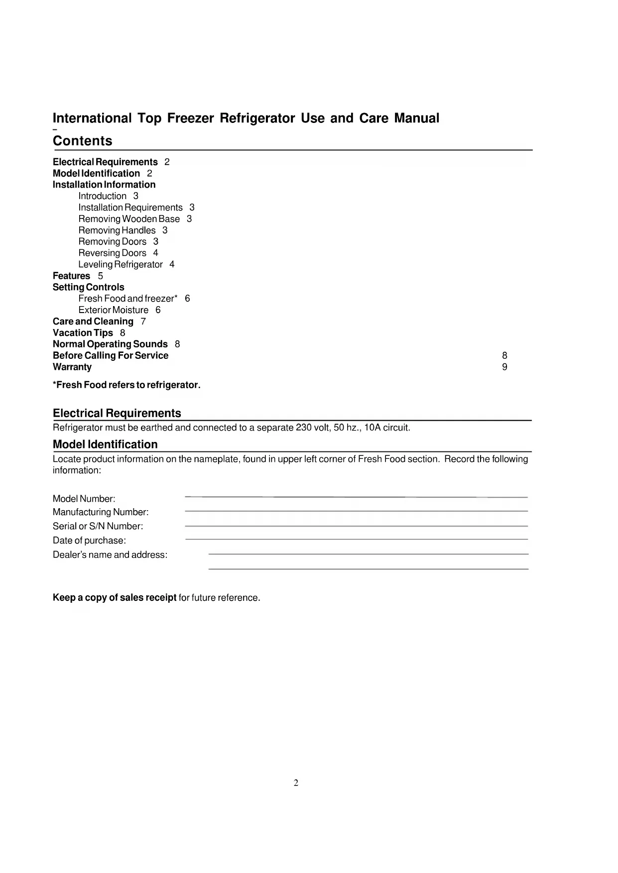 Refrigerator must be earthed and connected to a separate 230 volt, 50hz 10A circuit.