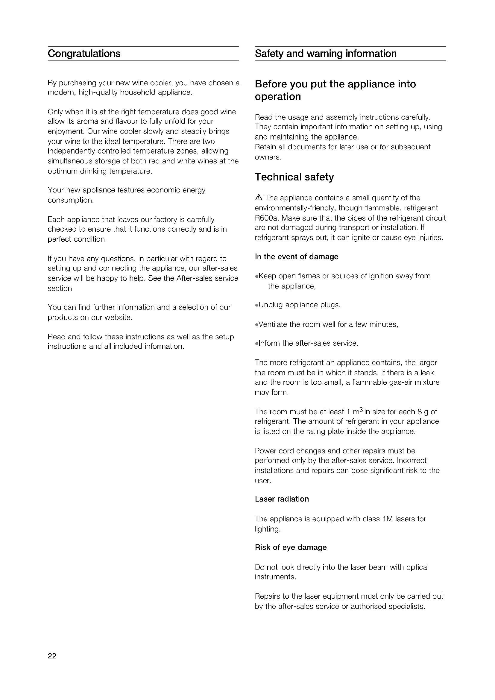 By purchasing your new wine cooler, you have chosen a modern, high-quality household appliance.