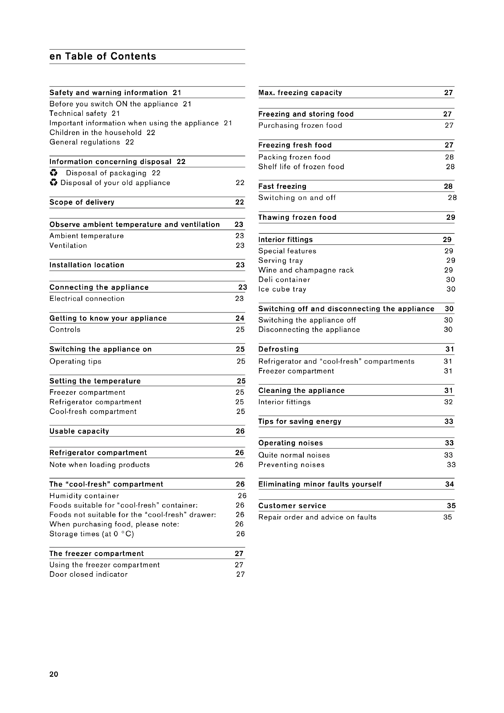 | Temperature differs greatly from the set value. | In some cases it is adequate to switch off the appliance for 5 minutes.If the temperature is too high wait a few hours and check whether the temperature has approached the set value.If the temperature is too low check the temperature again the next day. | |