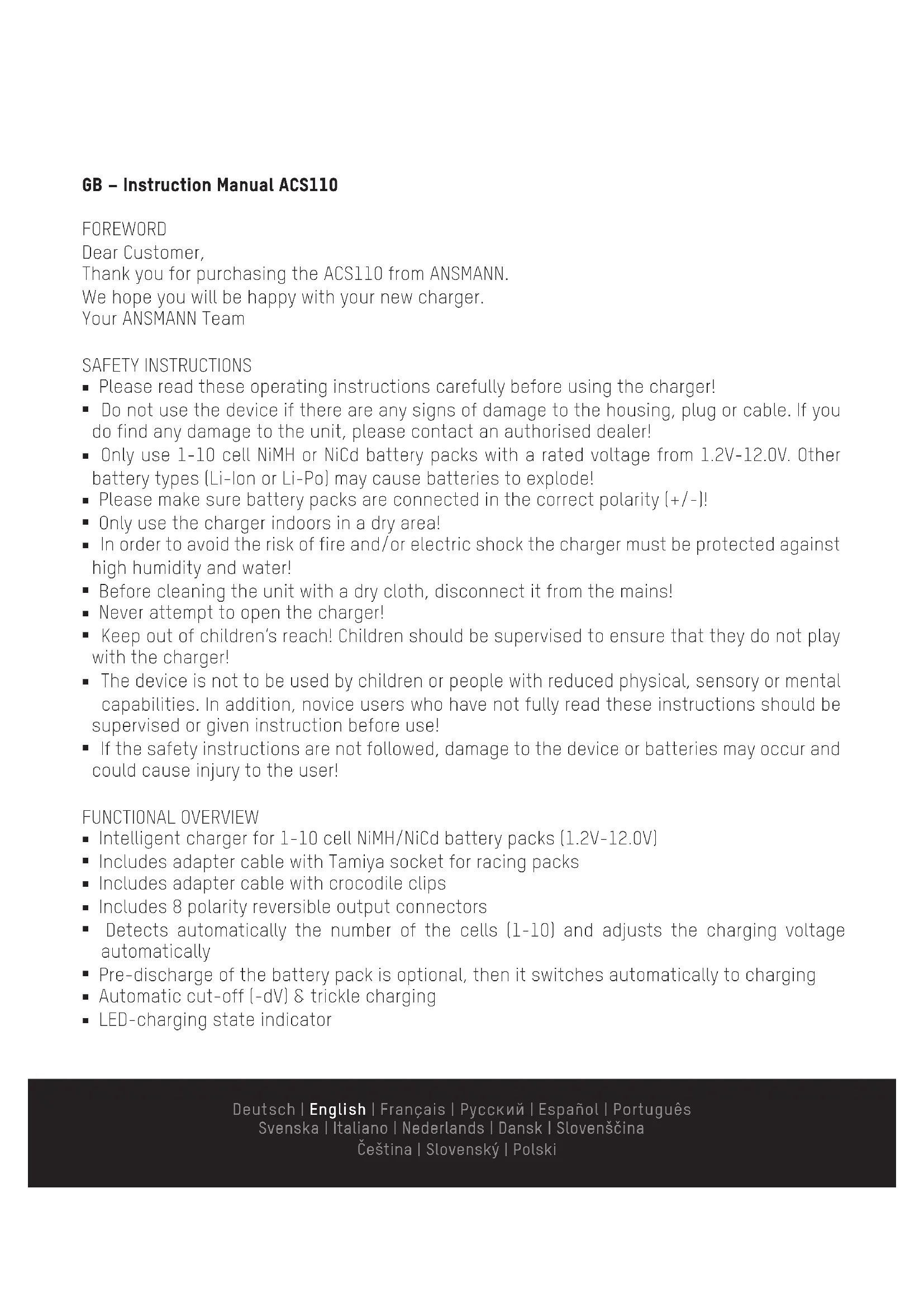 Find the device manual for free ACS110 ANSMANN in PDF.