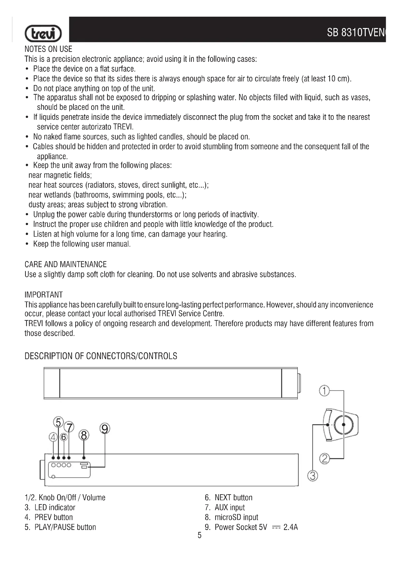 SB 8310 TV - Haut-parleur Trevi - Free user manual and instructions