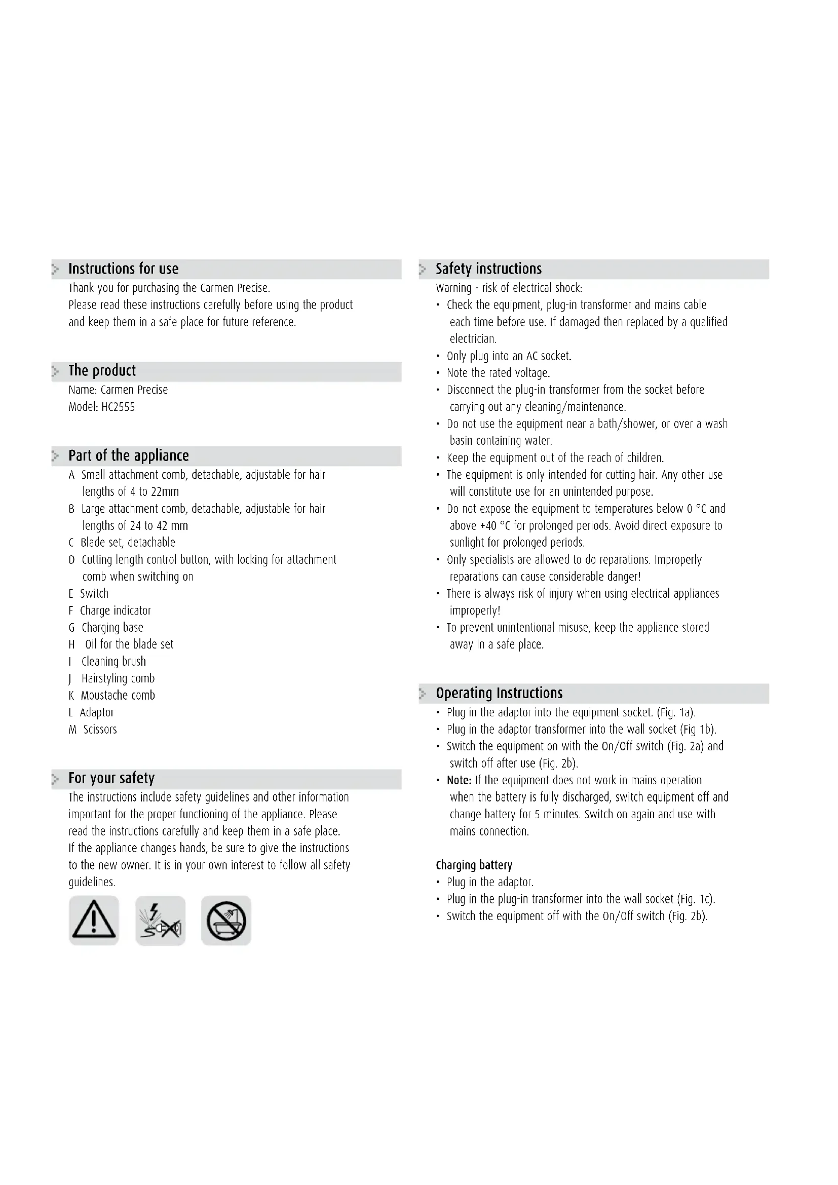 - The equipment is only intended for cutting hair. Any other use will constitute use for an unintended purpose.