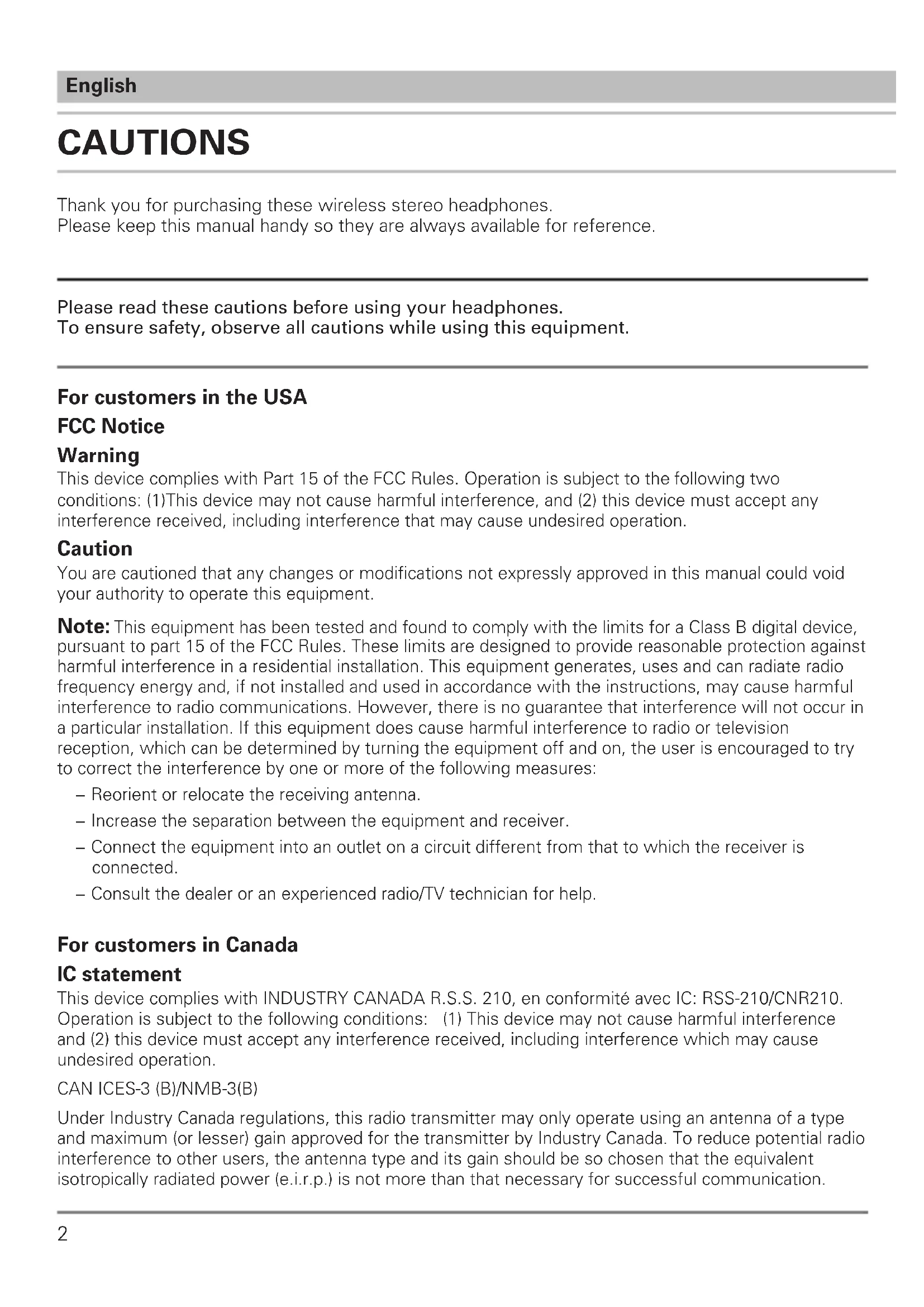 Manuel d'utilisateur Instruction booklet Libretto di istruzioni ATH-S700BT ATH-S700BT Casque sans l ATH-S700BT Wireless headphones ATH-S700BT Auriculares inalámbricosCAUTIONS English Please read these cautions before using your headphones. To ensure safety, observe all cautions while using this equipment. Thank you for purchasing these wireless stereo headphones. Please keep this manual handy so they are always available for reference.