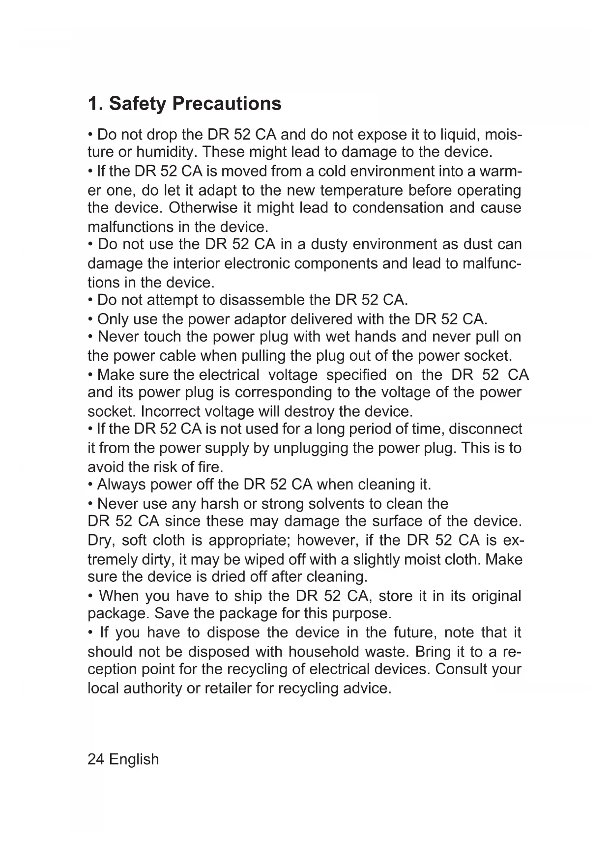 - Do not drop the DR 52 CA and do not expose it to liquid, mois- ture or humidity. These might lead to damage to the device.