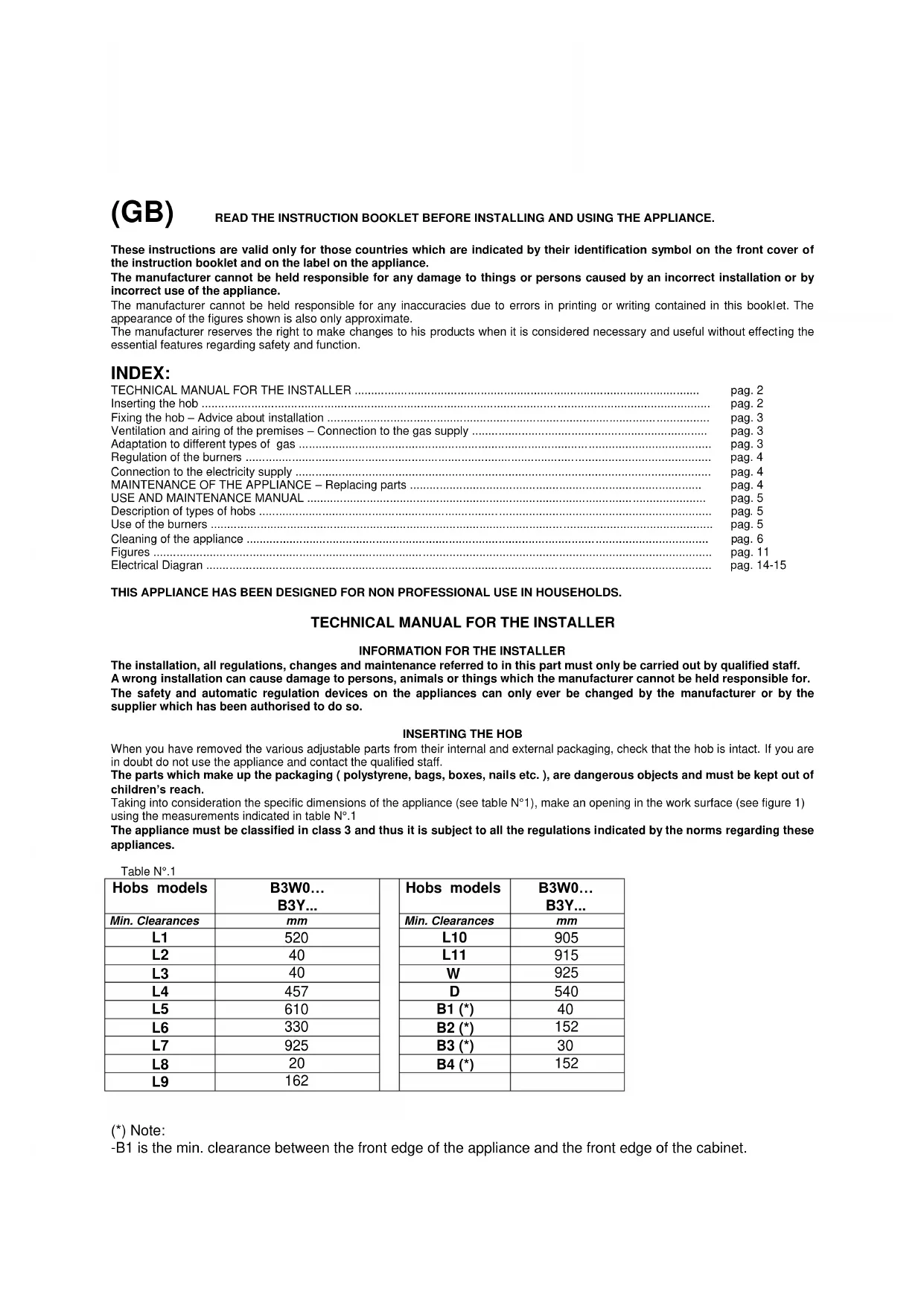 pag. 2 AND USE OF FIXED HOBS WITH GAS OR MIXED SUPPLY