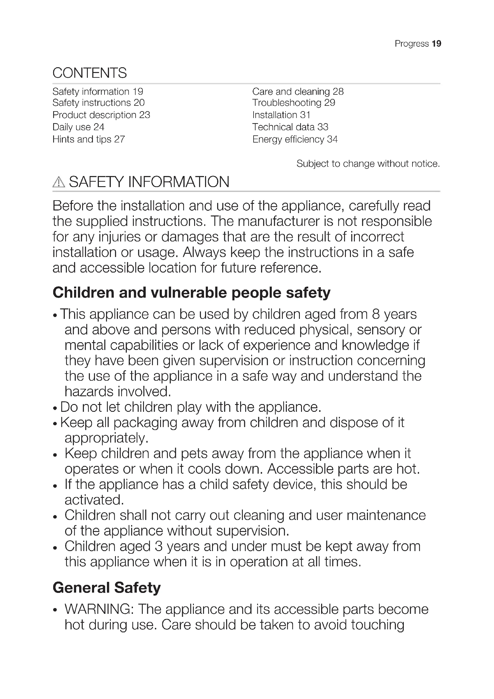 - This appliance can be used by children aged from 8 years and above and persons with reduced physical, sensory or mental capabilities or lack of experience and knowledge if they have been given supervision or instruction concerning the use of the appliance in a safe way and understand the hazards involved.