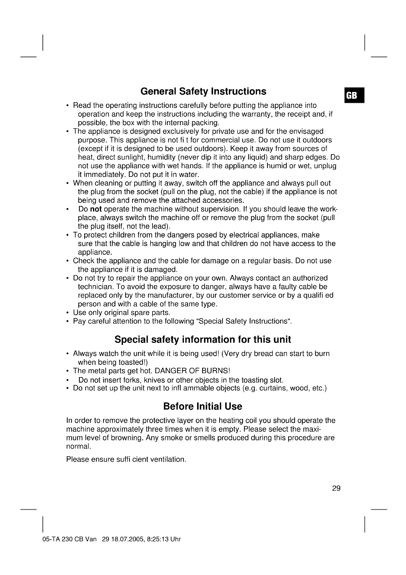 TA 230 CB - Toaster BOMANN - Free user manual and instructions