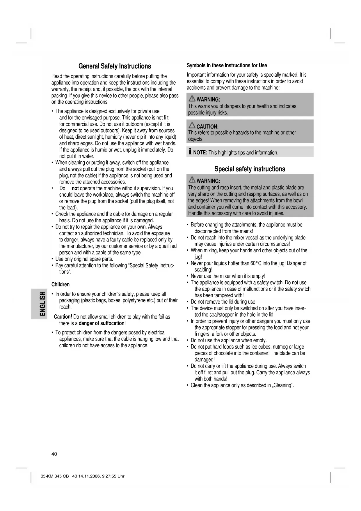 - Clean the appliance only as described in „Cleaning“. 05-KM 345 CB 40 14.11.2006, 9:27:55 UhrENGLISH ENGLISH ENGLISH