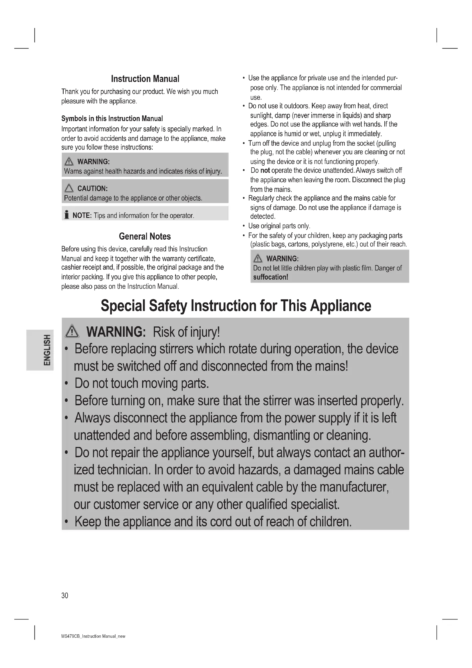 - Keep the appliance and its cord out of reach of children.31 MS479CB_Instruction Manual_new 01.07.16