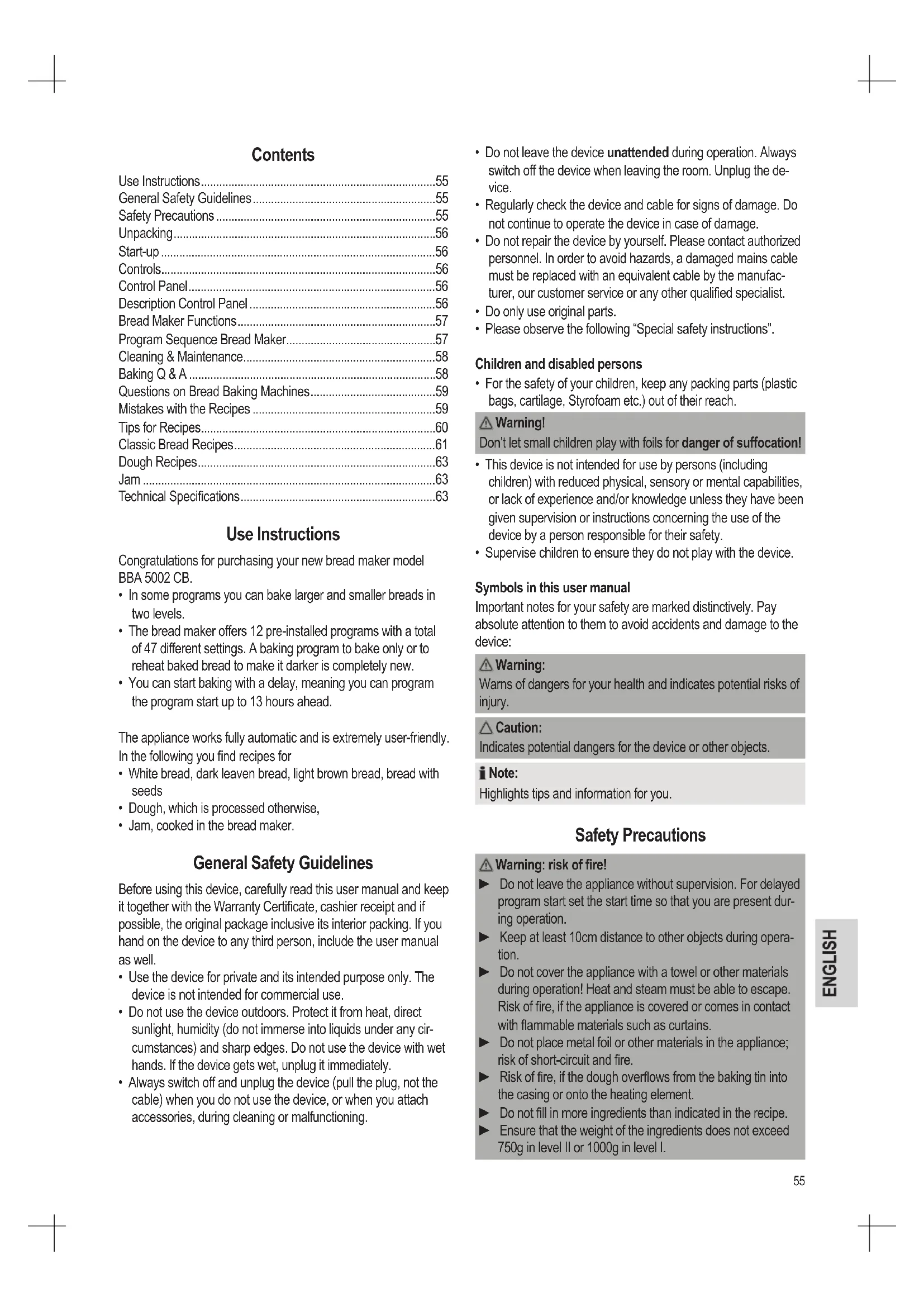 - Jam, cooked in the bread maker. General Safety Guidelines Before using this device, carefully read this user manual and keep it together with the Warranty Certicate, cashier receipt and if possible, the original package inclusive its interior packing. If you hand on the device to any third person, include the user manual as well.