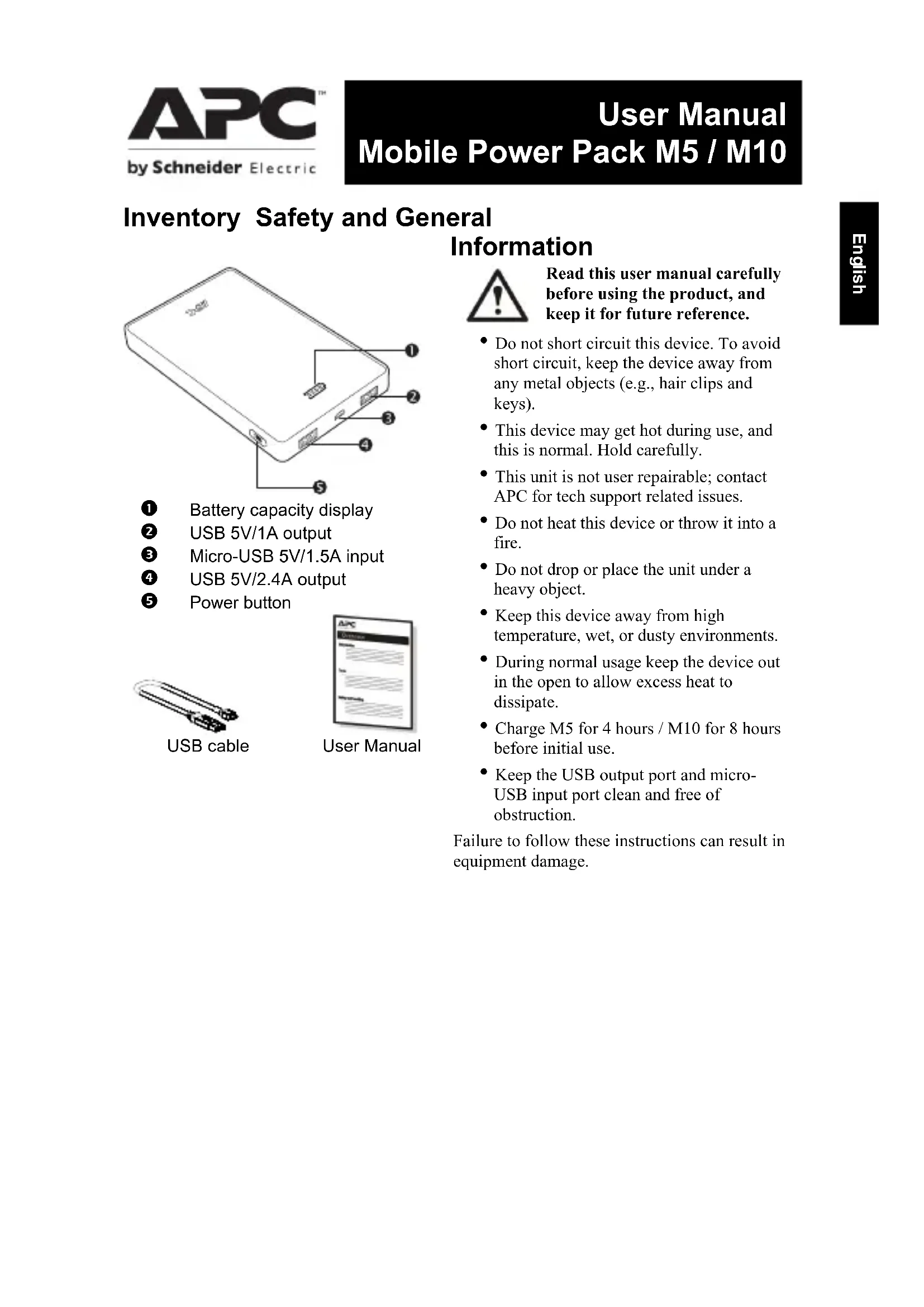Download the instructions for your Power bank in PDF format for free! Find your manual M5BK - APC and take your electronic device back in hand. On this page are published all the documents necessary for the use of your device. M5BK by APC.