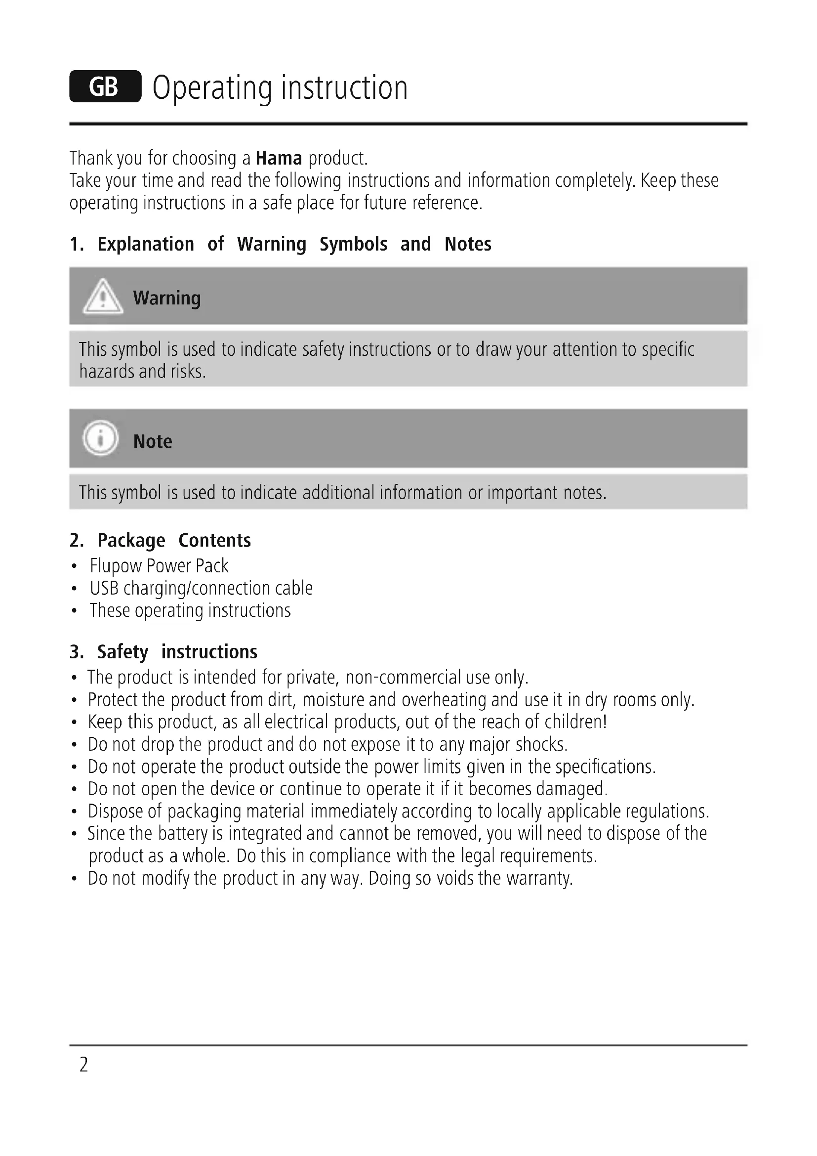 Download the instructions for your Power bank in PDF format for free! Find your manual Flupow - HAMA and take your electronic device back in hand. On this page are published all the documents necessary for the use of your device. Flupow by HAMA.
