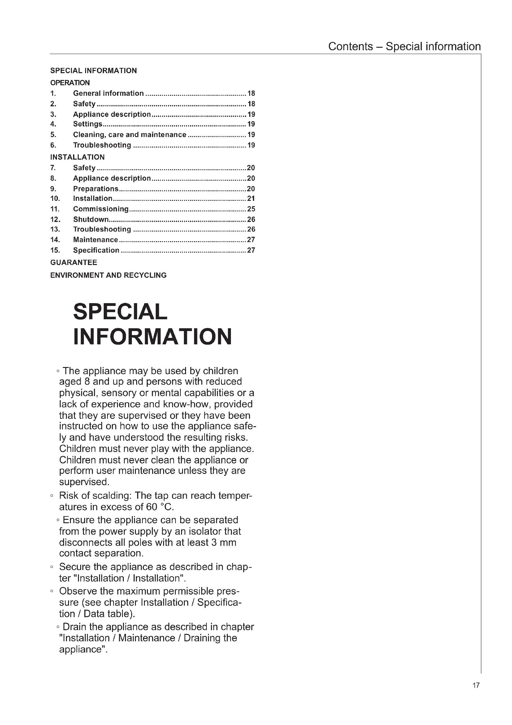 The chapters "Special Information" and "Operation" are intended for both the user and qualied contractors.The chapter "Installation" is intended for qualied con-tractors. Note Read these instructions carefully before using the appliance and retain them for future reference.Pass on the instructions to a new user if required.1.1 Safety instructions1.1.1 Structure of safety instructions
