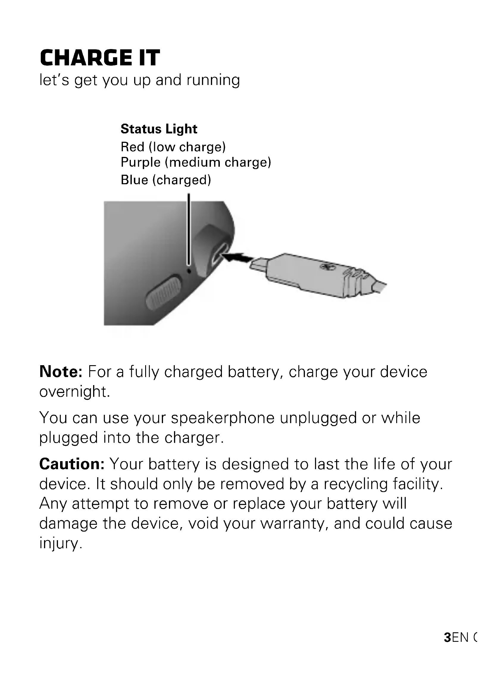 - Let voice prompts guide you in making connections, checking battery level, and more.