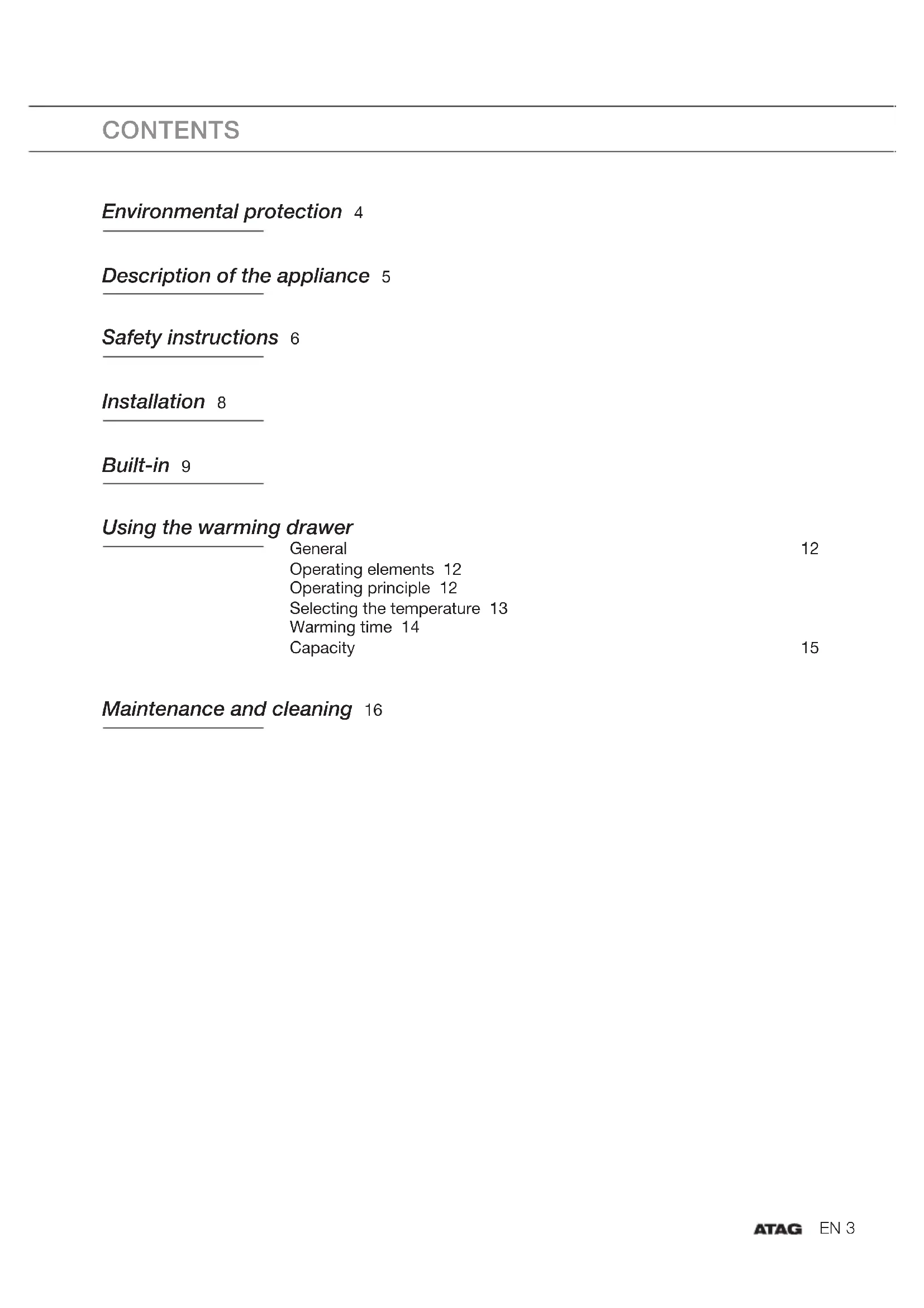 WD1611D - Warming drawers and cabinets Atag - Free user manual and instructions