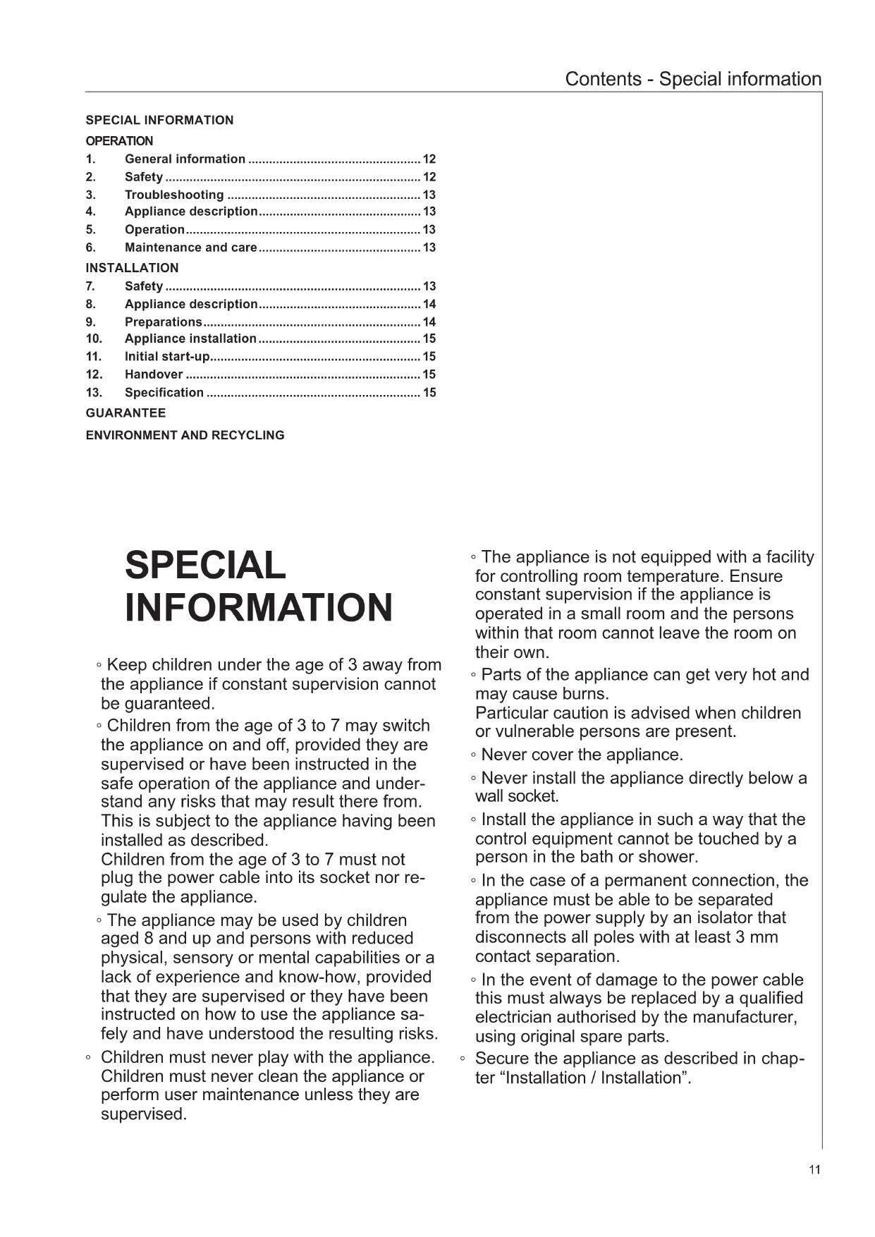 - Children must never play with the appliance. Children must never clean the appliance or perform user maintenance unless they are supervised.12 Operation - for users and contractors OPERATION