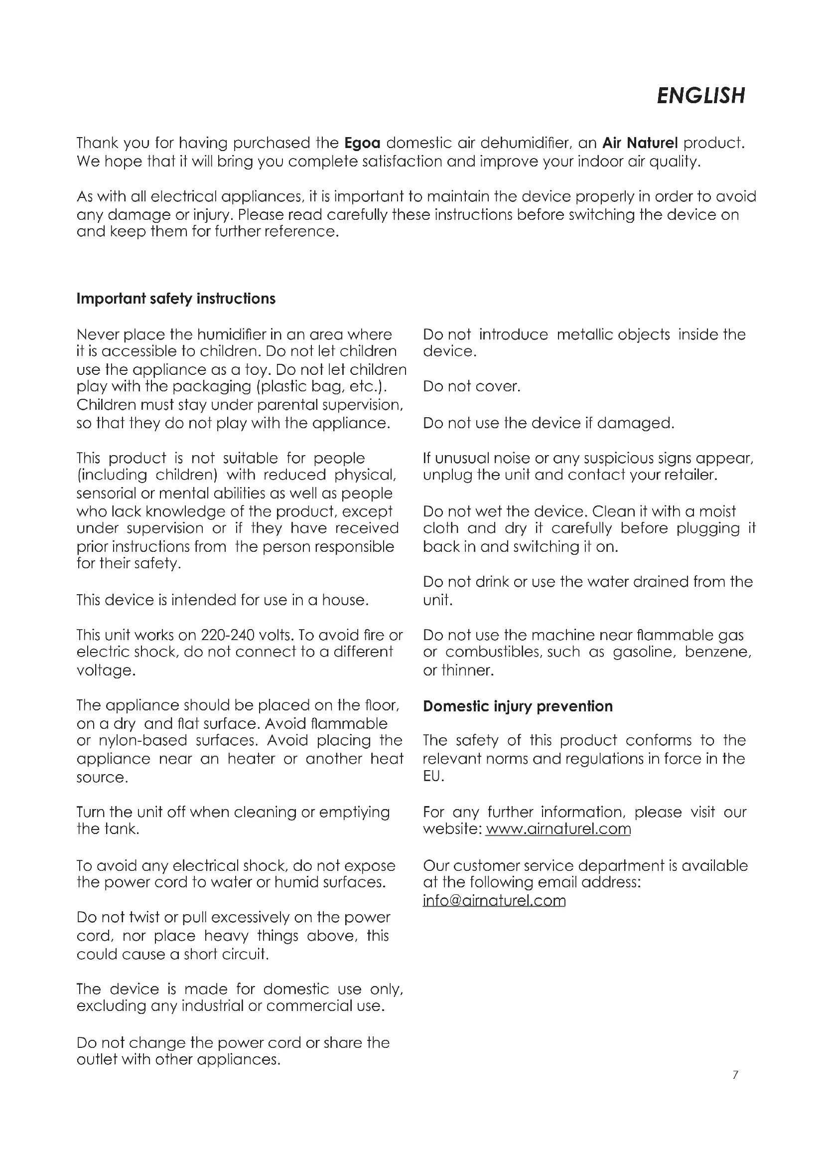 Download the instructions for your Dehumidifier in PDF format for free! Find your manual Egoa - AIR NATUREL and take your electronic device back in hand. On this page are published all the documents necessary for the use of your device. Egoa by AIR NATUREL.