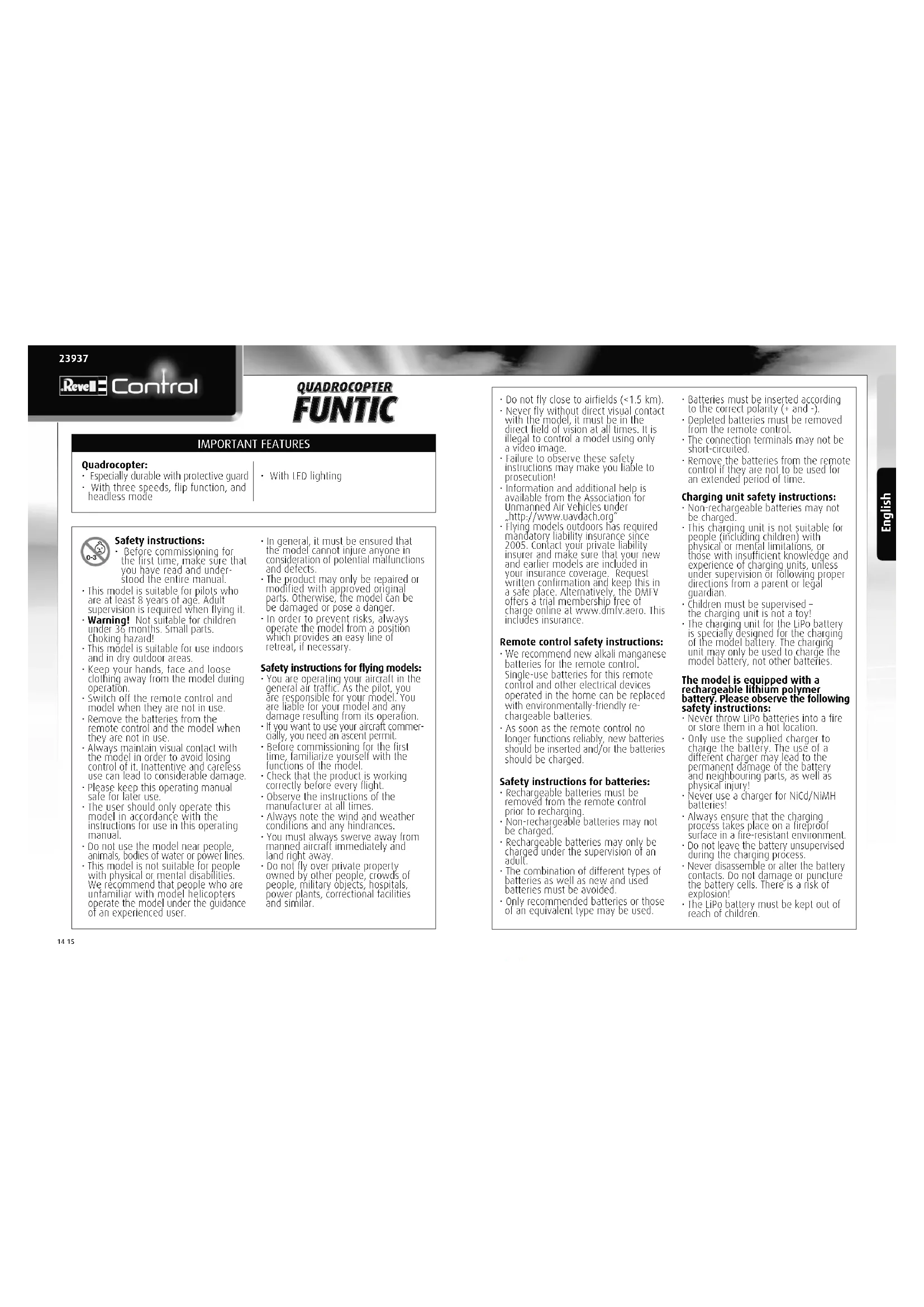 Download the instructions for your Remote control toy in PDF format for free! Find your manual Funtic - Revell and take your electronic device back in hand. On this page are published all the documents necessary for the use of your device. Funtic by Revell.