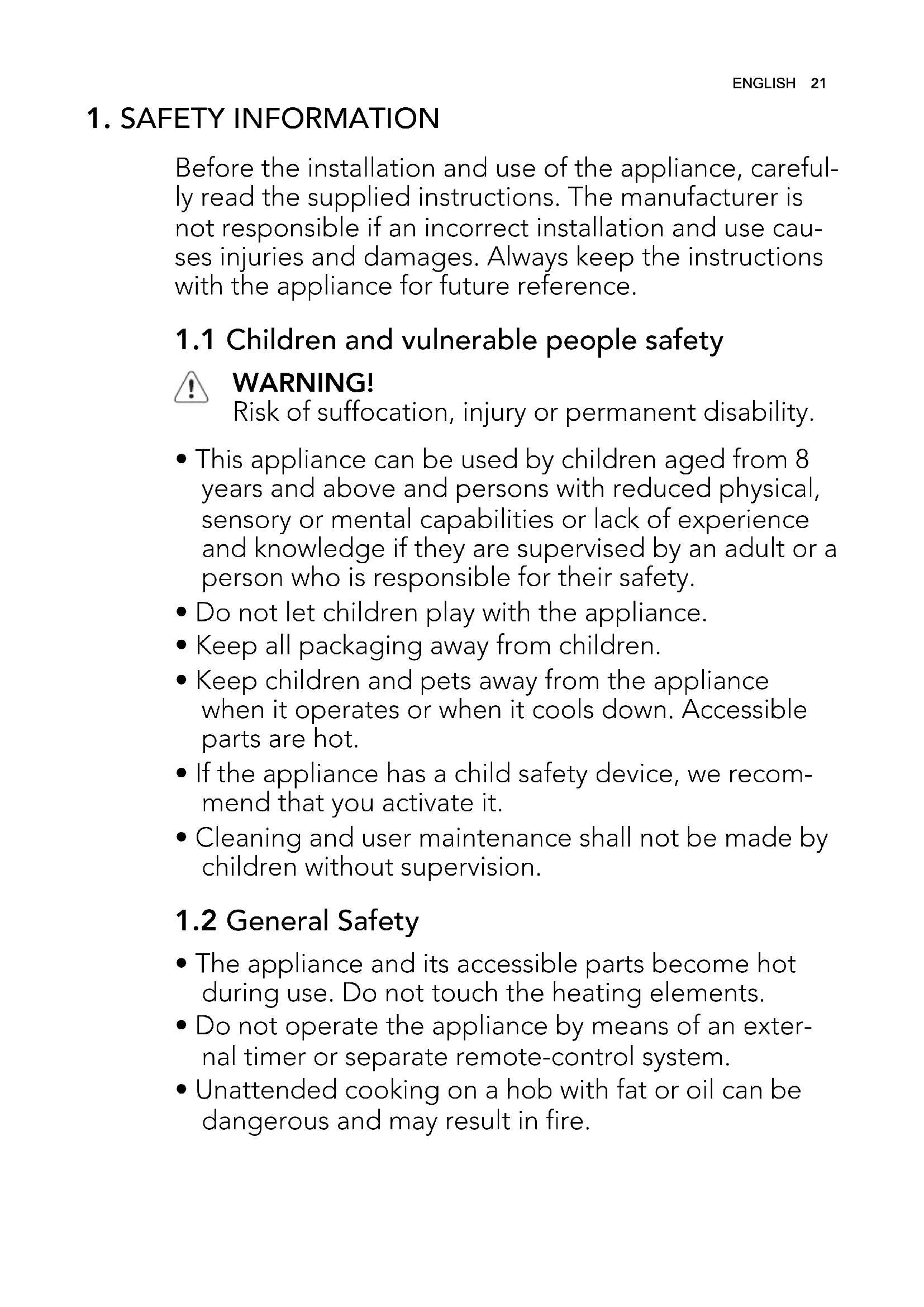 - This appliance can be used by children aged from 8 years and above and persons with reduced physical, sensory or mental capabilities or lack of experience and knowledge if they are supervised by an adult or a person who is responsible for their safety.