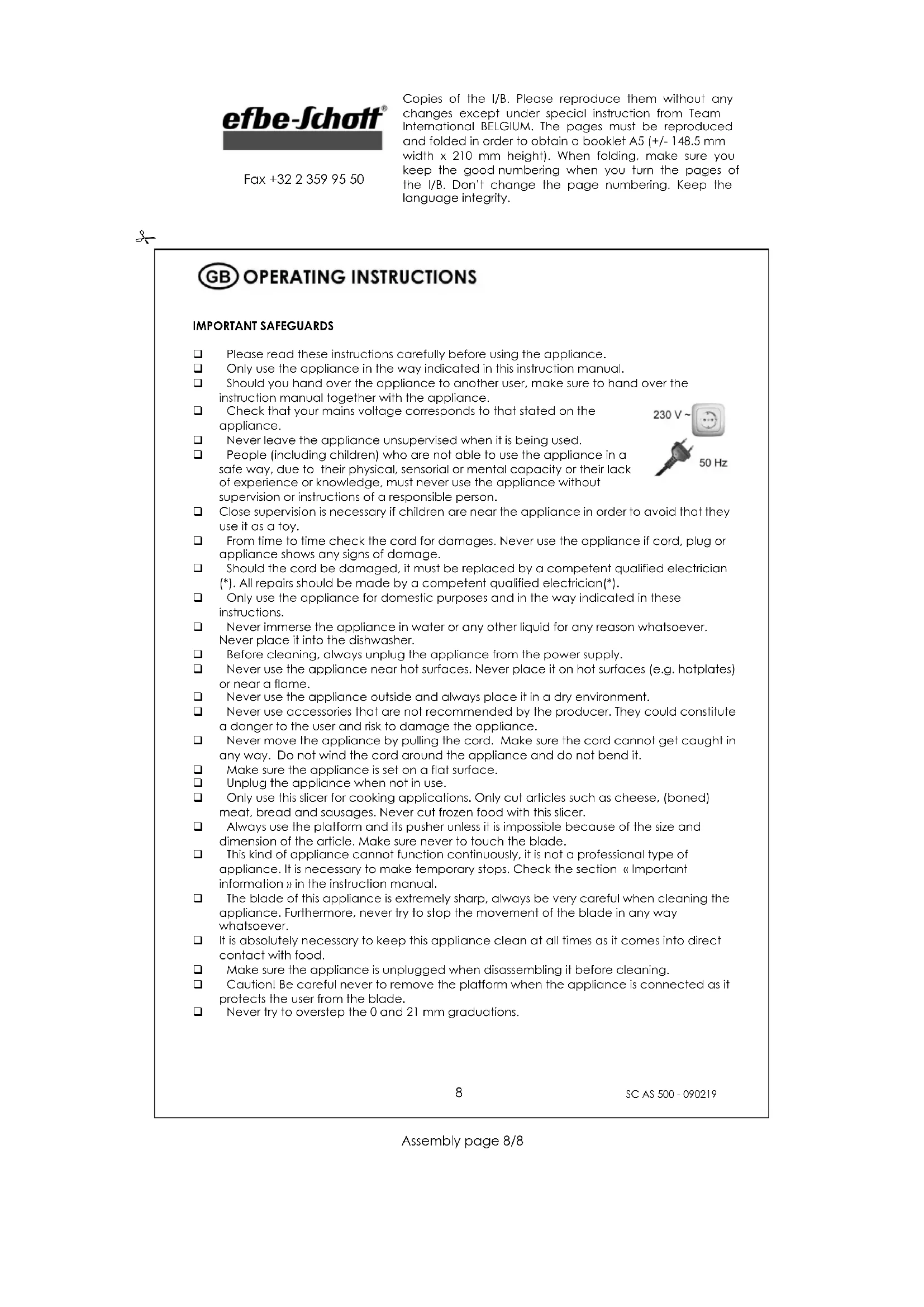 Download the instructions for your Slicer in PDF format for free! Find your manual AS 500 - Efbe-Schott and take your electronic device back in hand. On this page are published all the documents necessary for the use of your device. AS 500 by Efbe-Schott.