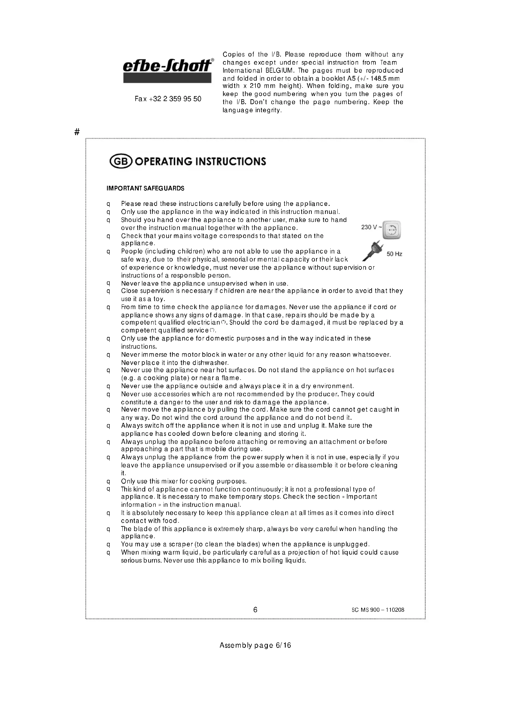 Download the instructions for your Mixer in PDF format for free! Find your manual MS 900 - Efbe-Schott and take your electronic device back in hand. On this page are published all the documents necessary for the use of your device. MS 900 by Efbe-Schott.
