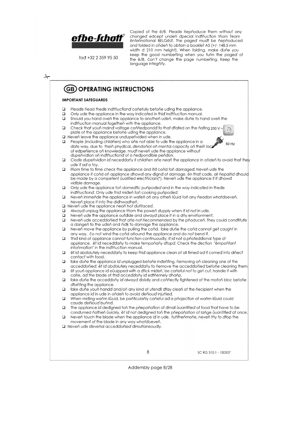 Copies of the I/B. Please reproduce them without any changes except under special instruction from Team International BELGIUM. The pages must be reproduced and folded in order to obtain a booklet A5 (+/- 148.5 mm width x 210 mm height). When folding, make sure you keep the good numbering when you turn the pages of the I/B. Don’t change the page numbering. Keep the language integrity.