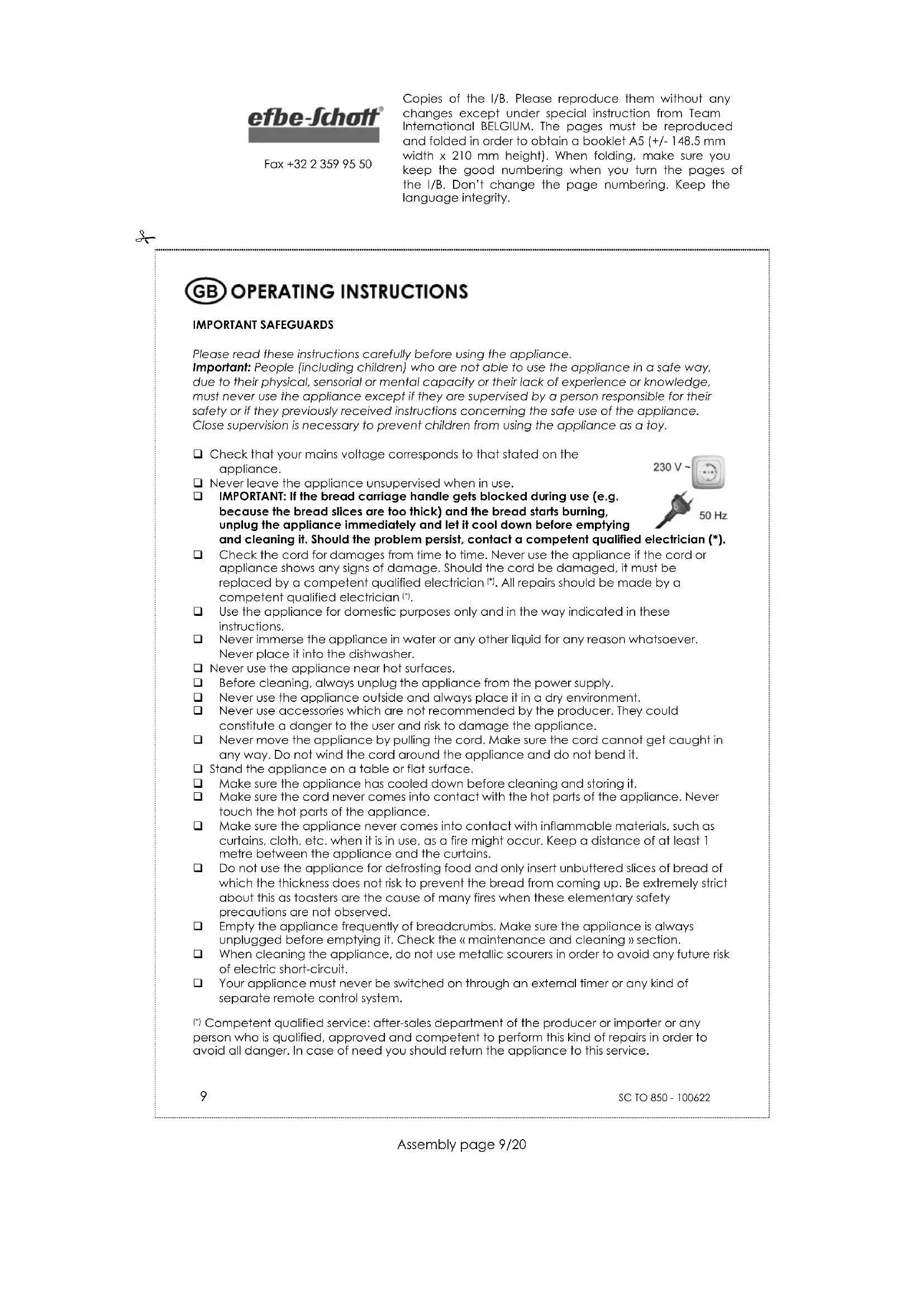 Copies of the I/B. Please reproduce them without any changes except under special instruction from Team International BELGIUM. The pages must be reproduced and folded in order to obtain a booklet A5 (+/- 148.5 mm width x 210 mm height). When folding, make sure you keep the good numbering when you turn the pages of the I/B. Don’t change the page numbering. Keep the language integrity.
