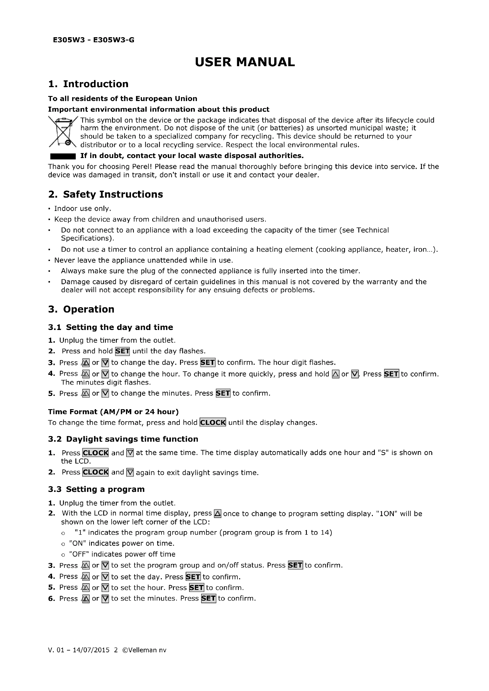 USER MANUAL E305W3G Perel